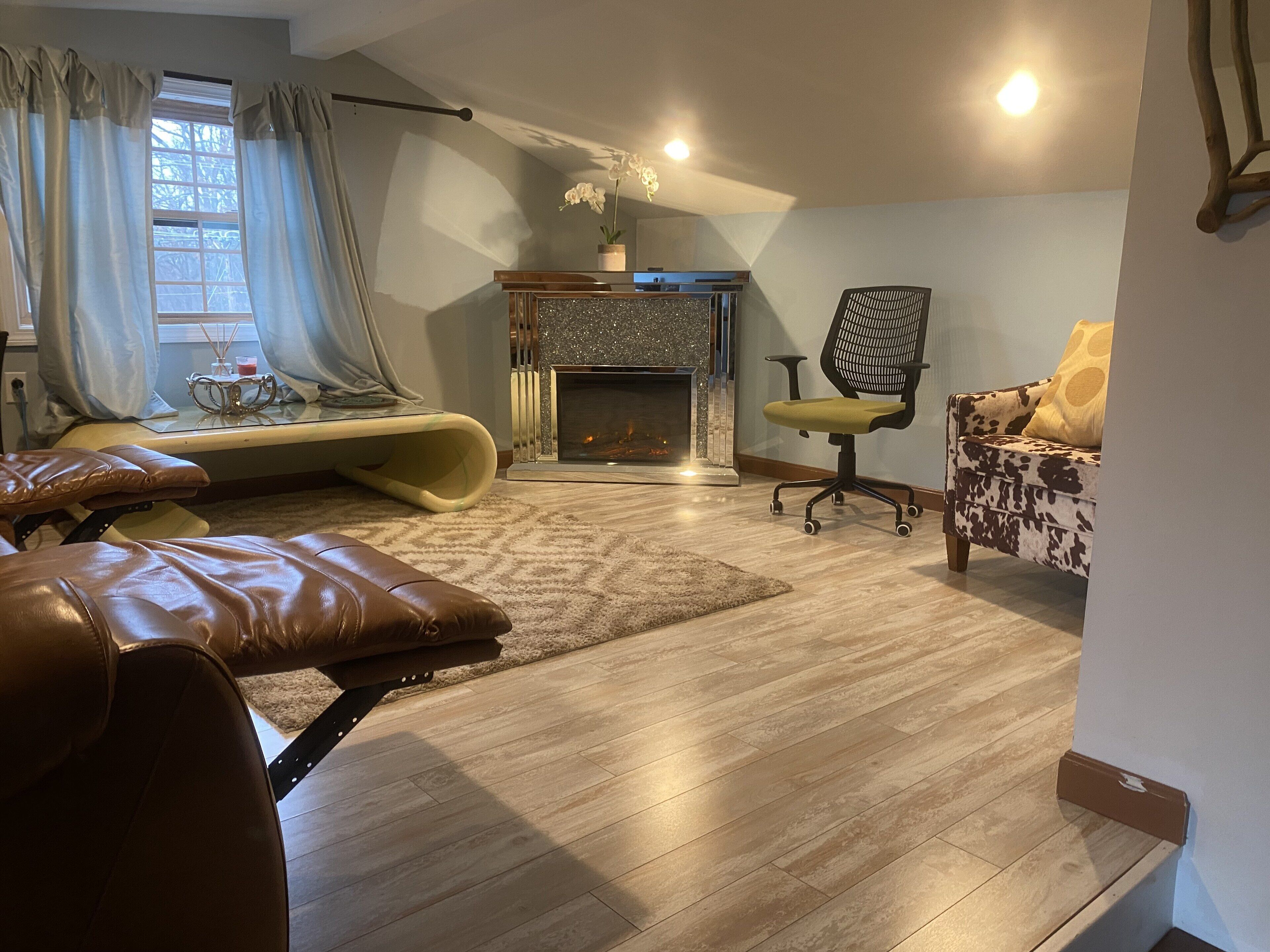 Our 1,100 square-ft immaculate, spacious 1 bedroom 4-room apartment has an enclosed porch and features its own separate entrance, air conditioning, speedy Wifi, and a sizable eat-in dining room.