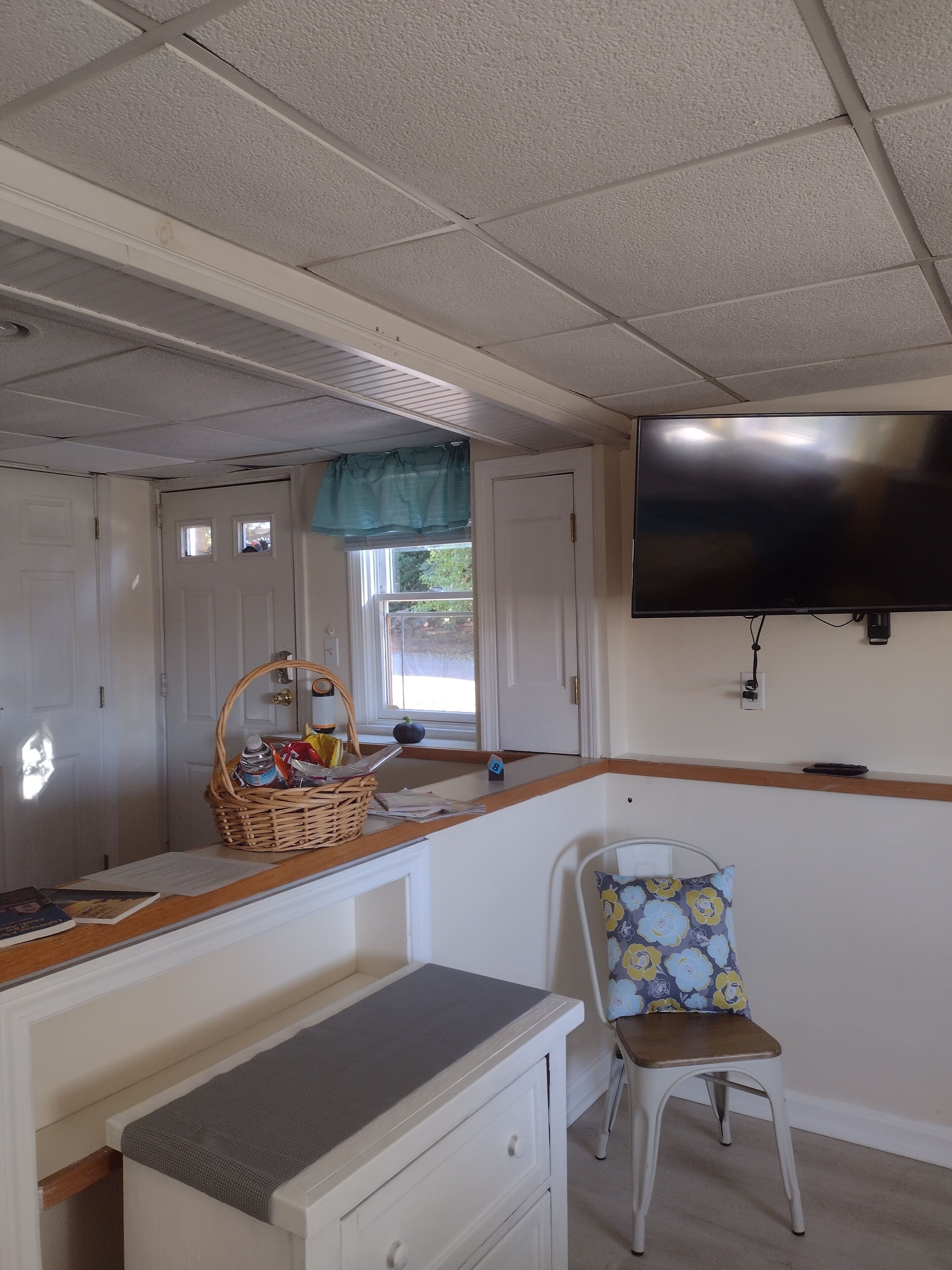 Comfortable, recently decorated, functional space with great lake and sunset views. WiFi. Wall-mounted high def TV. Wireless Bluetooth Speaker. Fridge. Keurig coffee maker (pods supplied). Electric tea kettle. Dining/working table. In-wall USB ports. Lakeside gas fire-pit, gas grill.