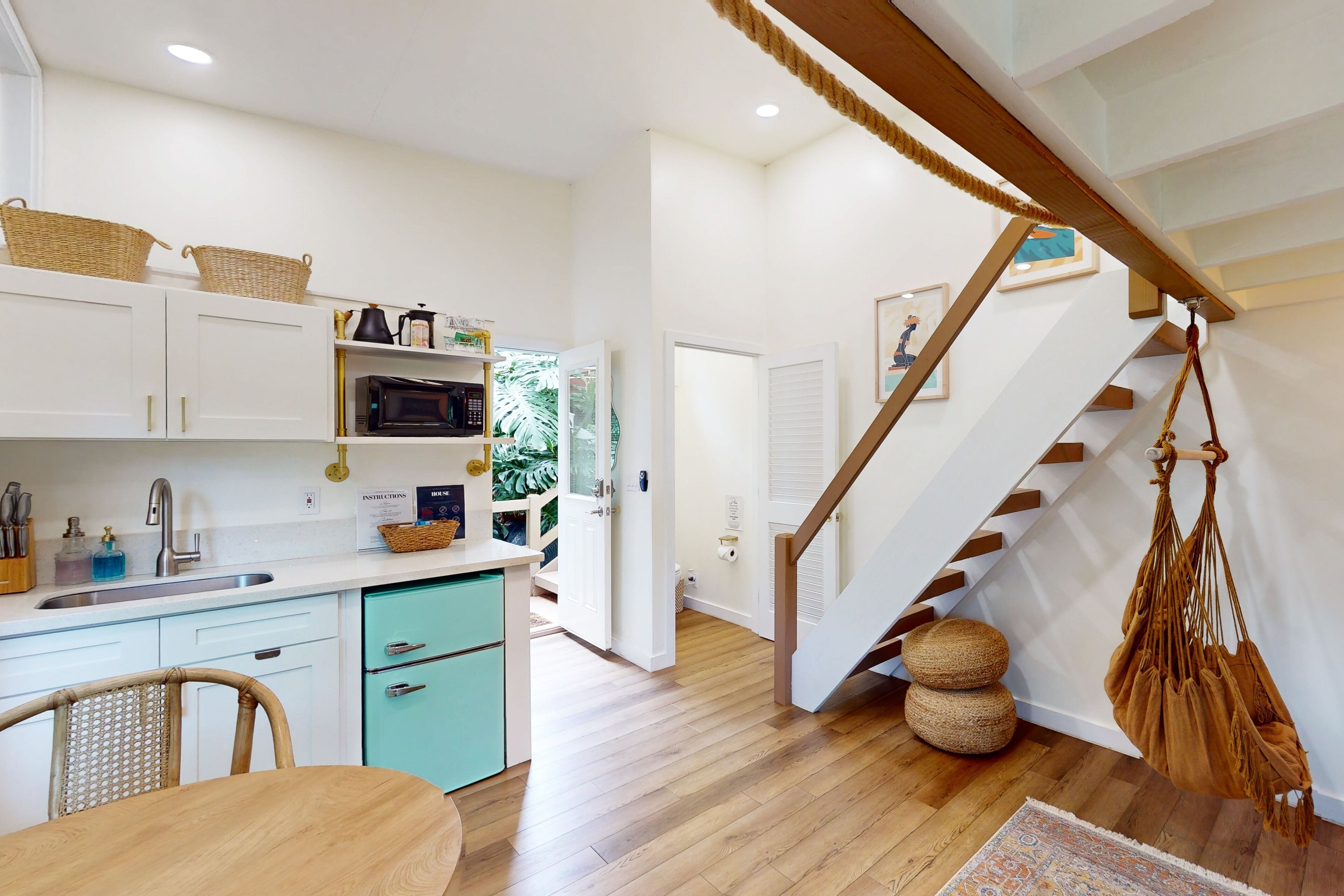 Upon stepping into this recently constructed private treehouse, you'll encounter a contemporary, airy ambiance meticulously crafted with guests' comfort in mind nestled amidst the scenic treetops and valleys of Mililani. Spread out comfortably in the welcoming living space - here you can sit back and unwind while streaming your favorite movie or show. Being so close to a major supermarket has its perks! Make sure to stock up on your favorite groceries and supplies so you can prepare delicious meals in the kitchenette, equipped with everything you might require, including a mini-fridge, a kettle, a microwave, a French press, and a coffee maker. Upstairs, discover a cool loft space where you can sleep soundly or binge all the latest series on a 42-inch smart TV from your own elevated hideaway. Additional perks include two beach chairs, a beach umbrella, a Pack N' Play (must be requested), and some puzzles.