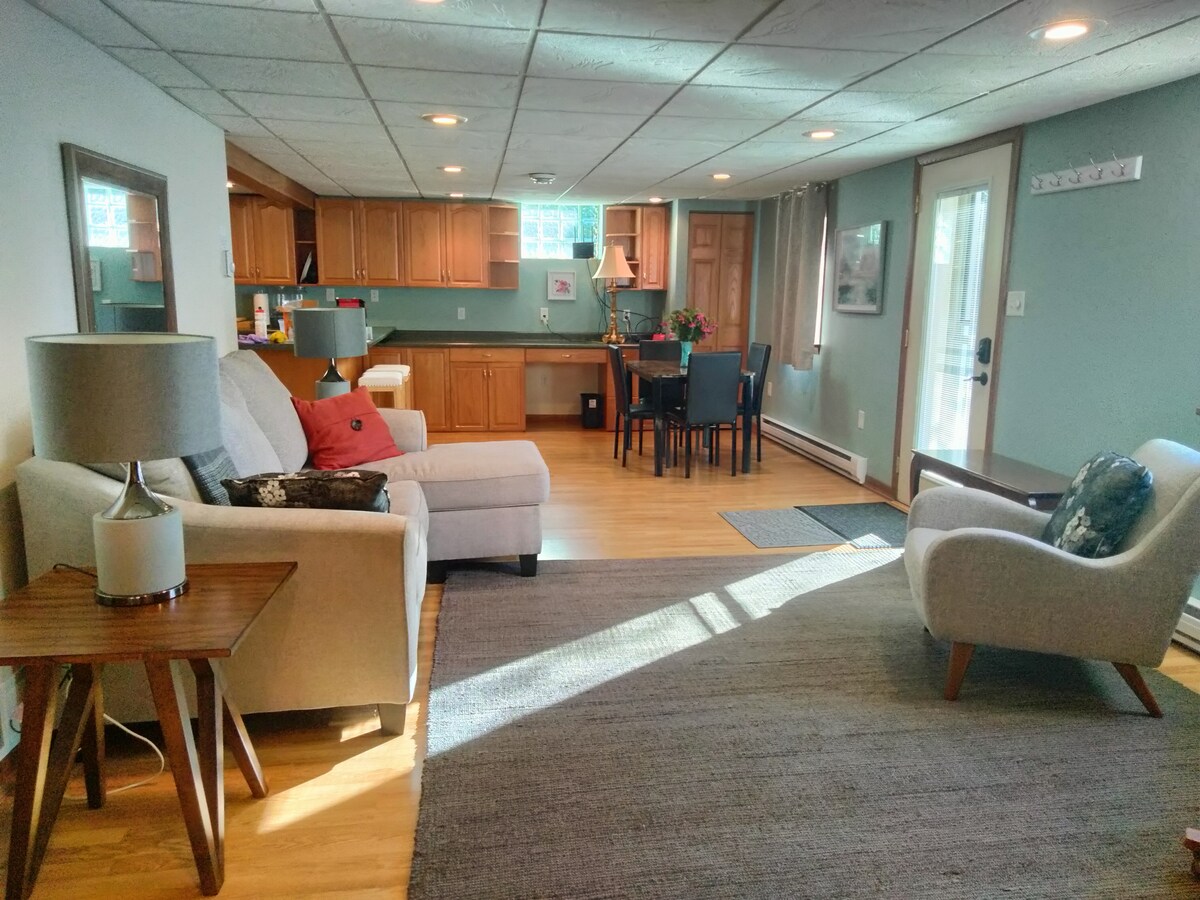 It is the lower level of a home with a walk out basement with a huge south facing yard and a patio. Located in a beautiful area with lake views. Close to hospitals, hiking, biking trails. This is set up for longer term rentals of at least 30 days. It is not a vacation rental. A lease is required.