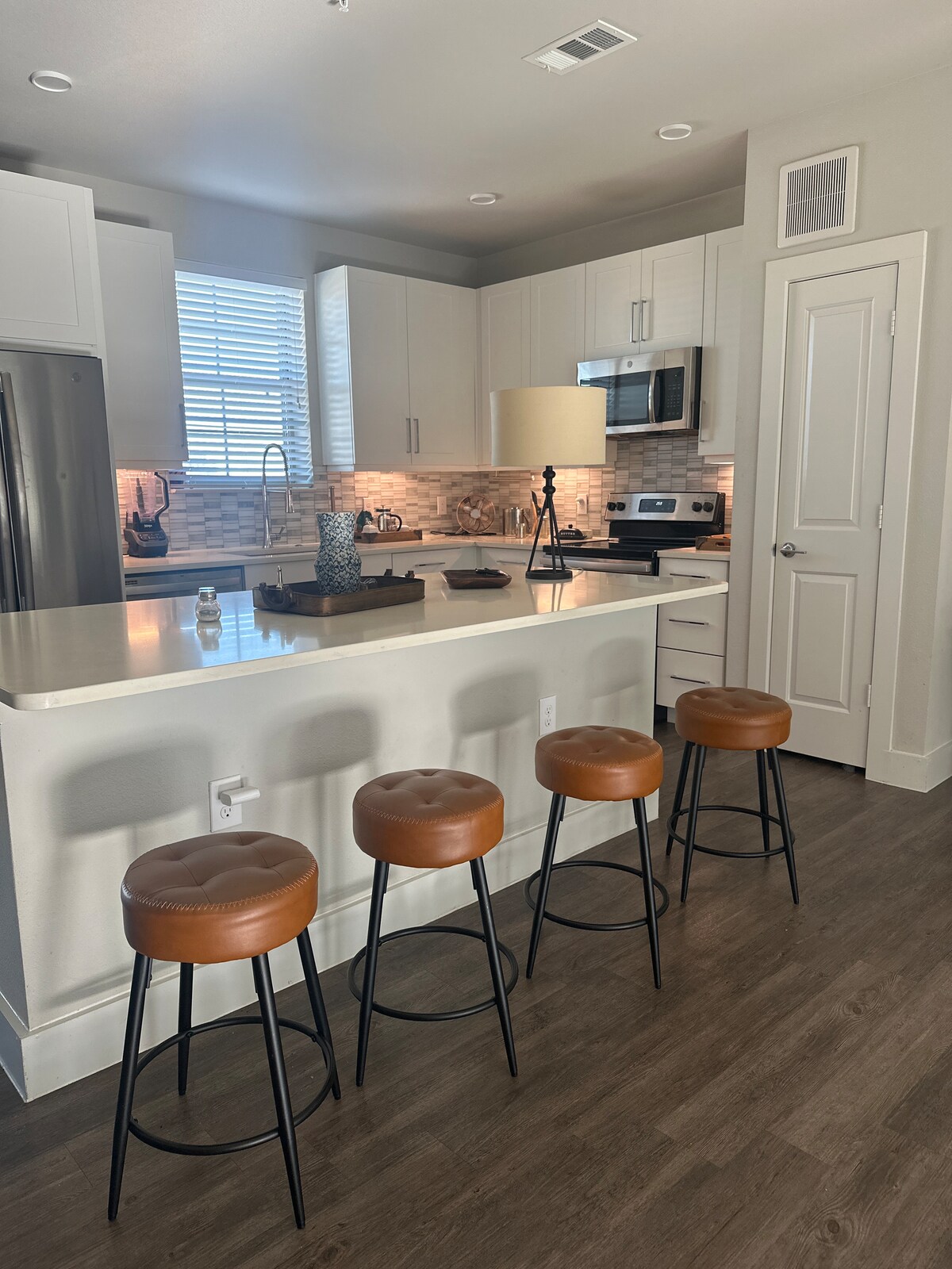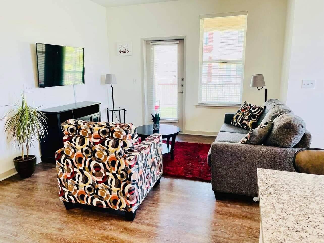 A cozy and peaceful luxury apartment, offering a serene retreat with elegant furnishings, modern amenities, a private patio, and a resort-style pool and fitness gym. You will have reserved parking steps away from this first-floor unit. Kick back and relax in this calm, stylish space. It's perfect for solo travelers, couples, small families, or friends for short or long stays. We are located in a quiet, safe, residential neighborhood with access to local restaurants & numerous activities.