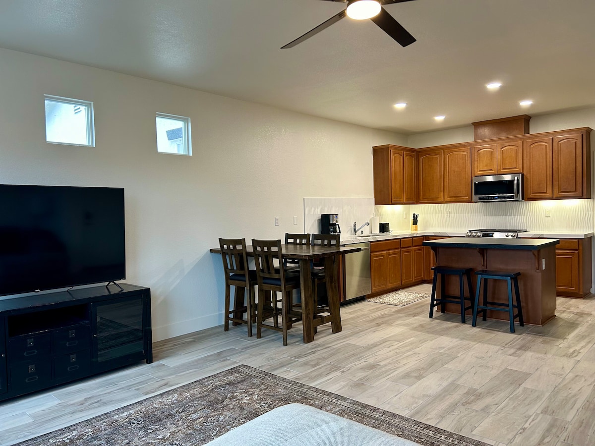 STUDIO AMENITIES: Smart TV, ceiling fans, breakfast bar, high chair