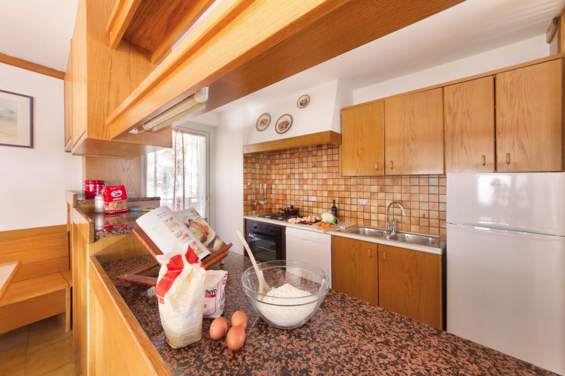 The apartment consists of a double bedroom, large and windowed, a windowed bathroom accessible through 5 internal steps and a living room. Thelatter is arranged on one side with a full kitchenette and dining table. On the opposite side, the double sofa bed, which can be opened if necessary.