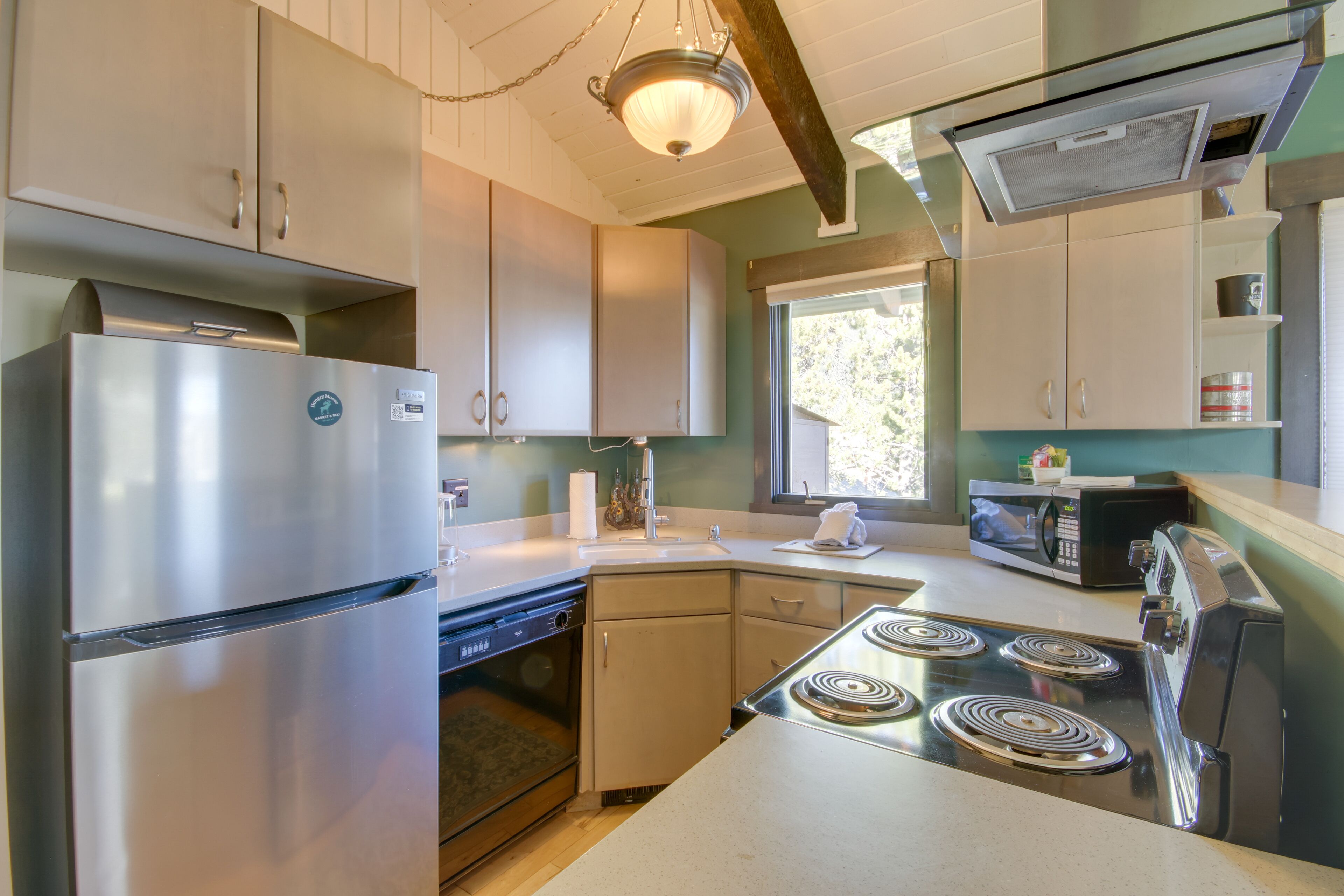 This vacation rental features premium bedding, a down comforter, and a ceiling fan. Connect to the free WiFi, or get cozy in front of the digital TV (streaming services available). Bathroom amenities include a hair dryer, towels, and toilet paper. Prepare a home-cooked meal in the kitchen, complete with an oven, a stovetop, and a full-sized refrigerator/freezer, as well as a coffee maker, an ice maker, and a microwave. And because there's a washer/dryer, you can go a bit lighter on your packing. Other amenities include bed sheets, an ironing board, climate-controlled heating, and wardrobe or closet.