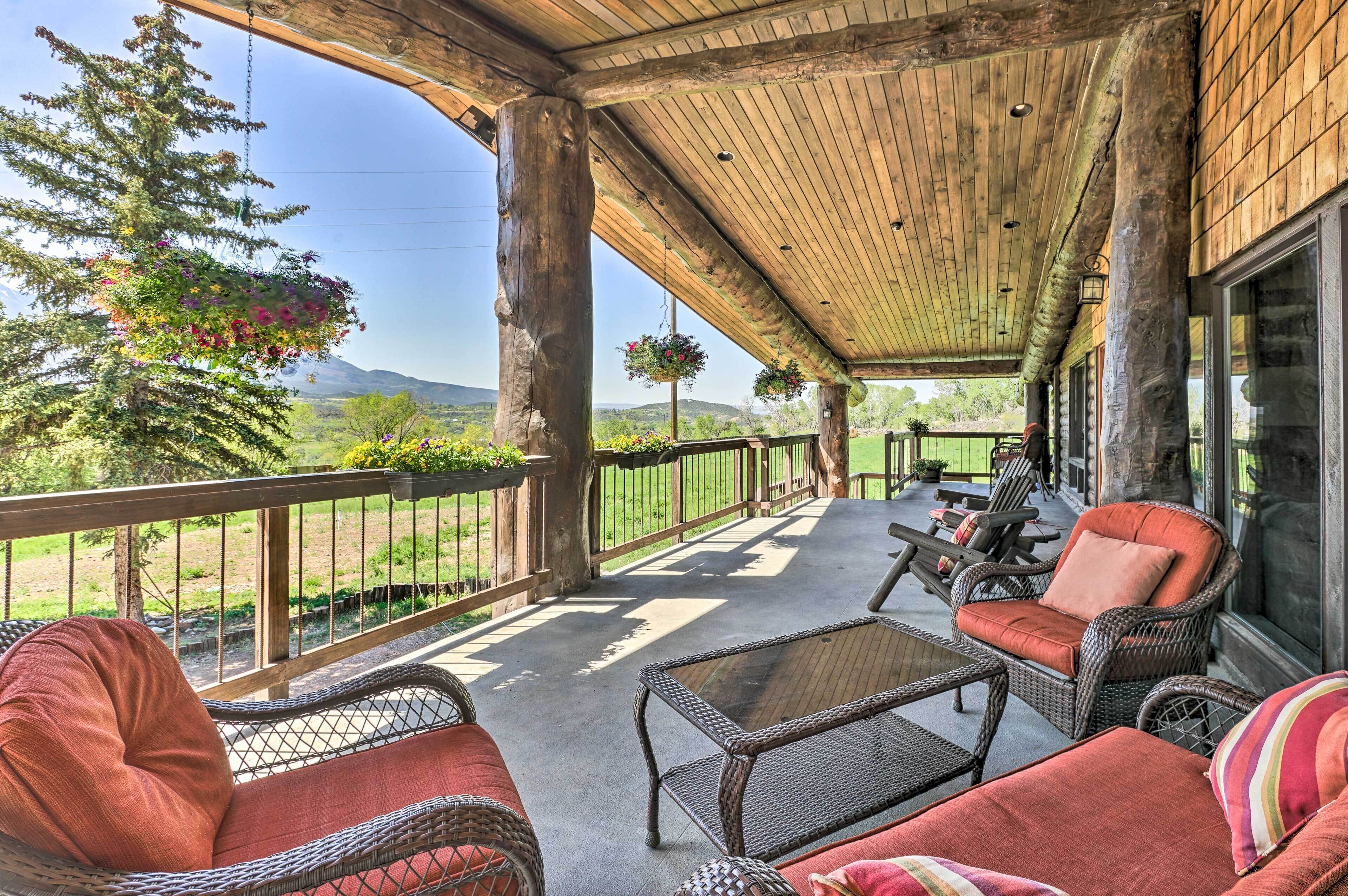 After returning from a hike or afternoon at a winery, come home to unwind on cushioned wicker chairs on the expansive front deck overlooking the mountains! Let your furry friend roam around in the yard with PJ the farm dog as you spend an evening stargazing in the clear Colorado sky!