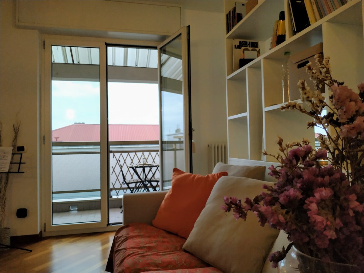 Wonderful loft with a view of Milan’s skyline.The apartment has an open space plan divided by a bookcase that separates the living room area from the bedroom.There’s a balcony with a small table to eat outdoor.Supermarket, pharmacy, cafés are all at walking distance.The apartm. is very conveniently located,only a few min’ drive from major highways and the Nuova Valassina Interstate road which will allow you to reach Milan and Rho Fiera in 15-30 min and Como in 40 min.Cleaning service included.