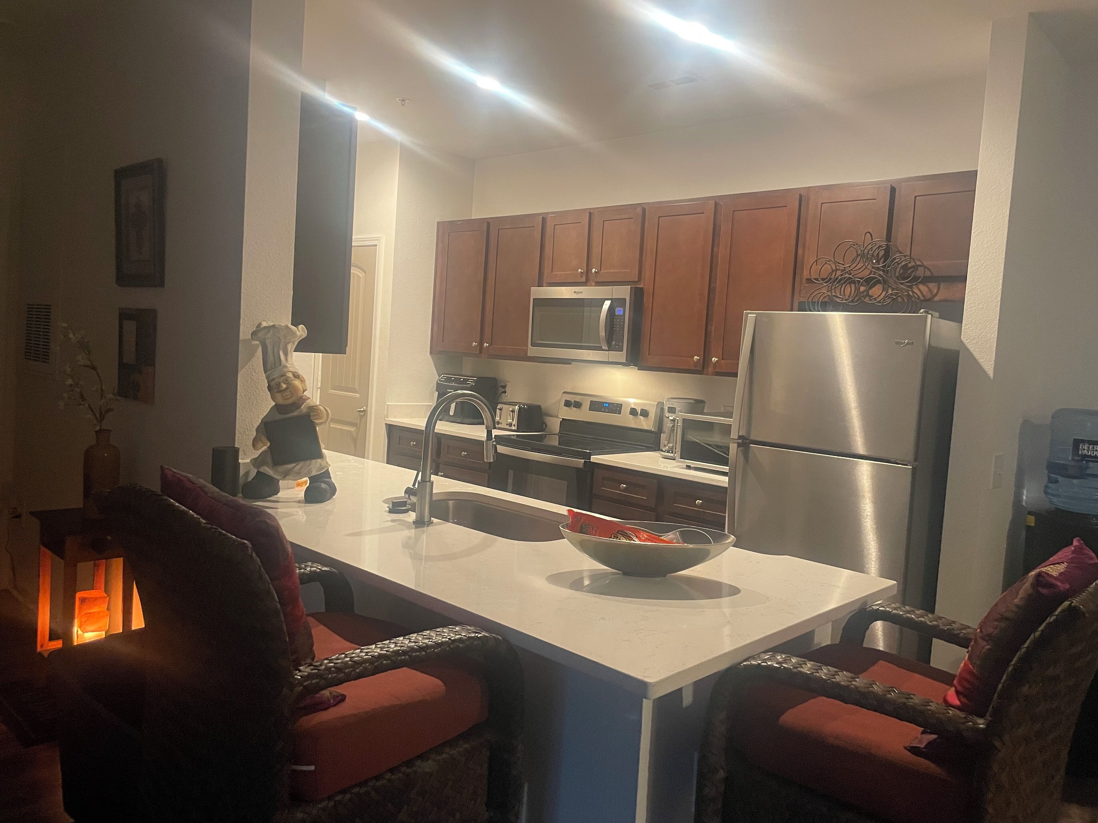 Imagine your morning routine: start with a fresh brew at the Coffee Corner, then step onto the Patio to begin your day feeling refreshed and energized. The living area invites you to unwind with a great book, catch the latest shows on the Roku Smart TV, or enjoy retro games on the video console. The spacious kitchen centers around a generous island and dining area, ideal for casual dining, snacks, or as a versatile workspace for remote days. With high-end appliances and ample counter space, every meal becomes a delightful experience.