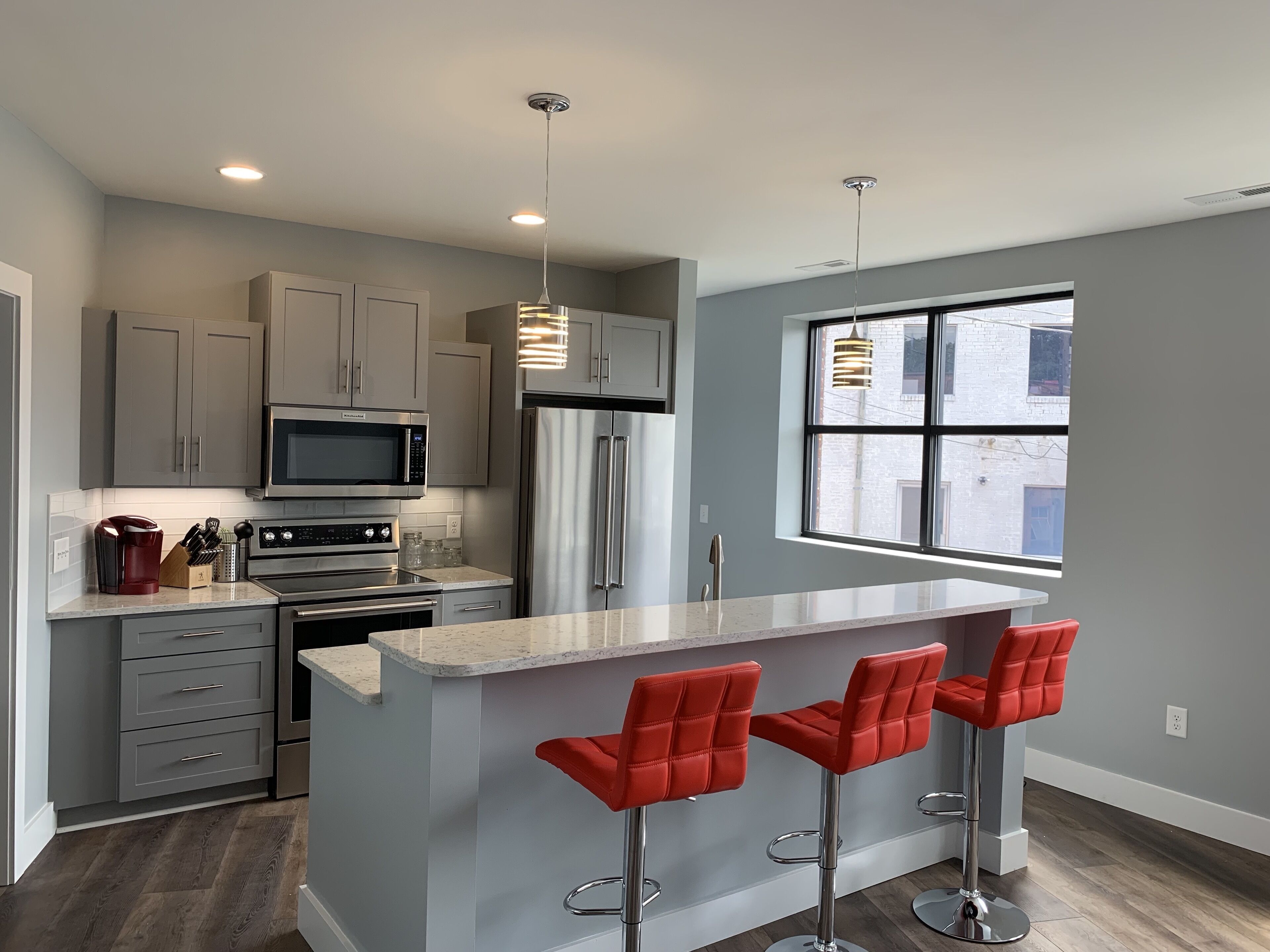 Described as an up and coming smaller version of Asheville, Morganton is seeing new energy from a vibrant craft beer scene, state wide acclaimed restaurants, and a reclaiming of upper level loft spaces into cool living areas. situated in Downtown is a beautiful apartment at 301 North Sterling Street. New one bedroom, one bath, open living area with sofa that makes a bed, full kitchen with dishwasher, washer/dryer, and lots of windows. Unit features high speed wifi and two 65 inch 4k chromecast enabled TV's. Ideal for client/prospect visits, corporate employee here on a special project, weekend getaway just to experience Downtown, and more. Self check-in with keypad lock. Available for single night stays and longer.