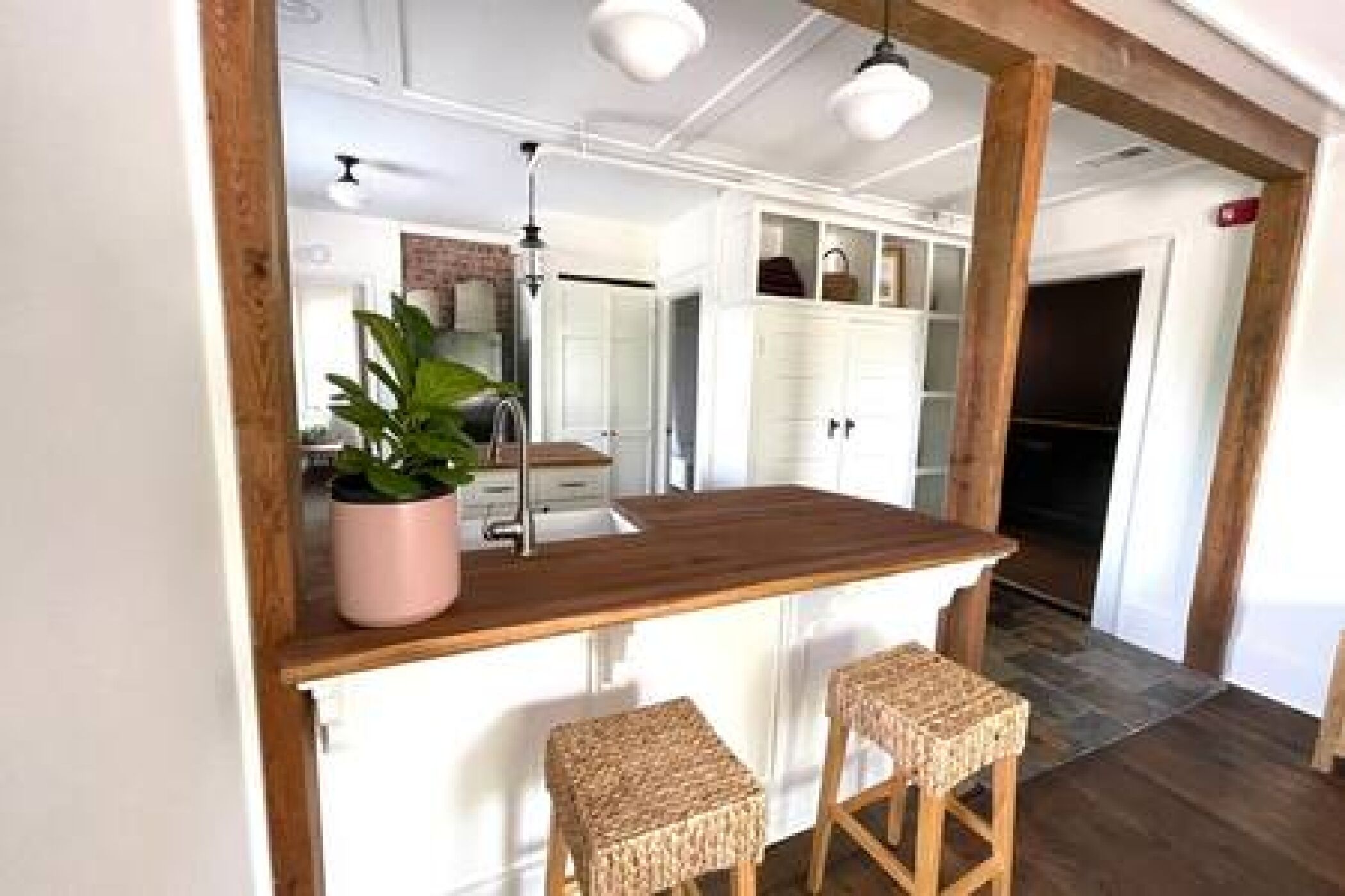 This apartment used to be the primary suite for the historic home. Former bedroom and en-suite bathroom have been upgraded and kitchen added - with the private balcony off of the kitchen. A balance of historic and rustic elements - exposed brick warm wood tones make this newly created apartment feel original to the home.
