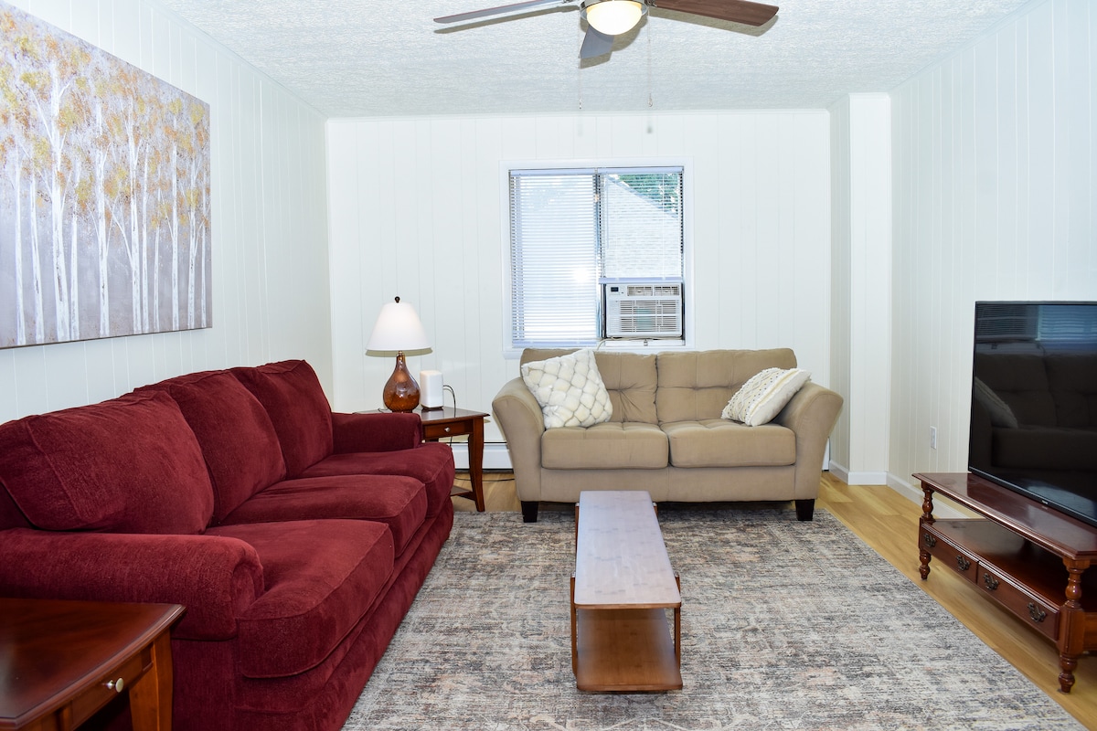 Walk in to a large light filled foyer that adjoins a comfortable living room and nicely remodeled kitchen. Enjoy 3 Bedrooms each with New Queen Size Beds, and a newly remodeled bathroom. Window Unit AC in each bedroom during the summer season.
