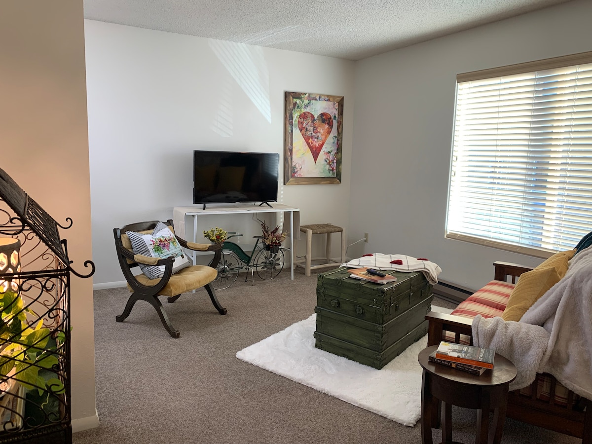You will love the full remodel touches within this charming 1 berm apartment. Unit is ground level, single story, quick access to downtown, University of Idaho + only 5 miles to WSU. Bedroom affords high quality queen mattress, tv, plus ensuite bath that has walk in shower + closet storage. Living area has large screen tv + comfy sitting space. Fully stocked separate kitchen area plus small dinette area. NOW INCLUDES BRAND NEW WASHER & DRYER!