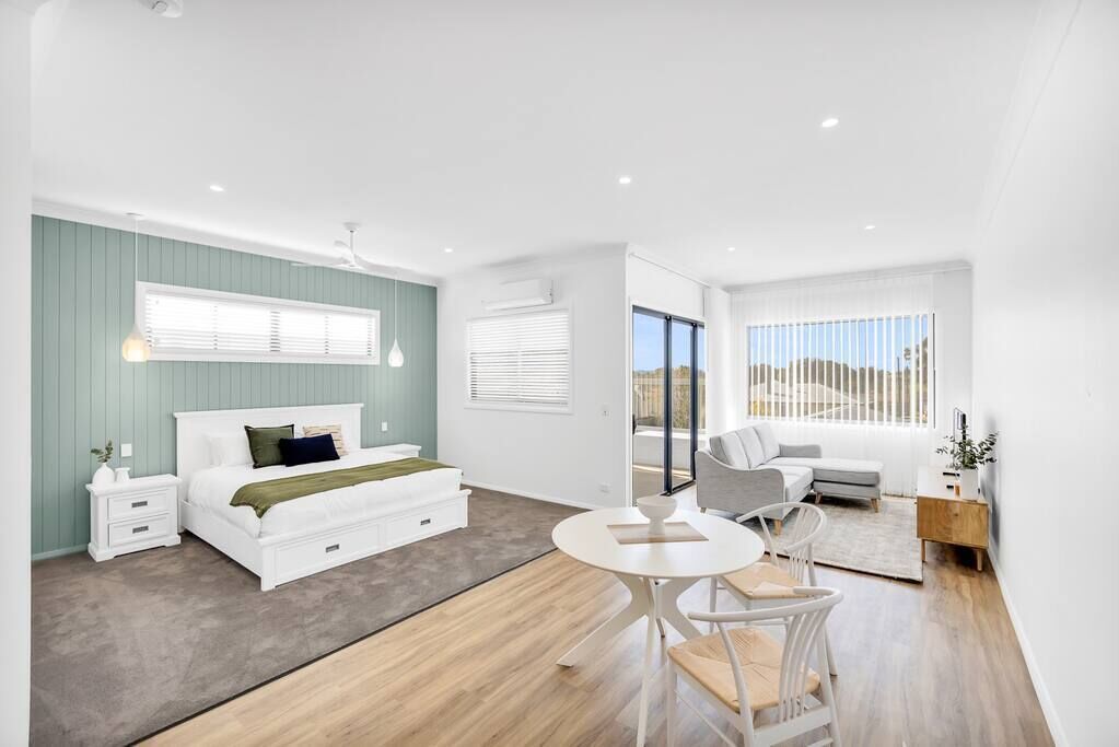 - "Great location. Great property. Only negative was bathroom mirrors not usable except in silhouette. However a handheld mirror provided. It’s the only way you can see yourself to shave apply makeup etc. " - "Very beautiful apartment and was in a great location." - "Lovely modern property. Comfortable stay" - "Cosy modern villa with all the essentials for a short stay for our family of 4. Short walk or drive to local cafes, supermarkets and playground. Quiet neighbourhood although we did hear the construction noises from the properties on both sides from early in the morning. Villa has a kitchen and laundry with all appliances. They were even able to provide a portacot and baby bath tub. Central heating was appreciated on the cold Mudgee mornings! Only negative would be the very narrow lock up garage and narrow driveway - challenging to park an SUV and almost impossible to then open the doors to load the kids in. "