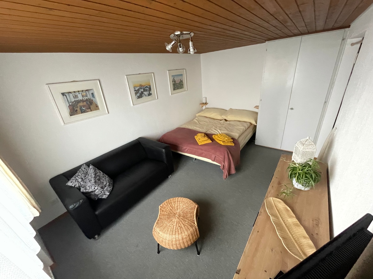 Integrated living and dining room with a brand new open kitchen with a coffee and tea area. Spacious very comfortable bedroom with built in closets. In addition, there is a double sofa bed (140cm) in the living area, which comfortably sleeps two people. Large modern bathroom with cabin shower and toilet. Balcony with seating and panoramic view of the alps. Shared garden with seating and barbecue available. Separate entrance with shoe and coat racks as well as ski room. Washing machine and tumble dryer available.