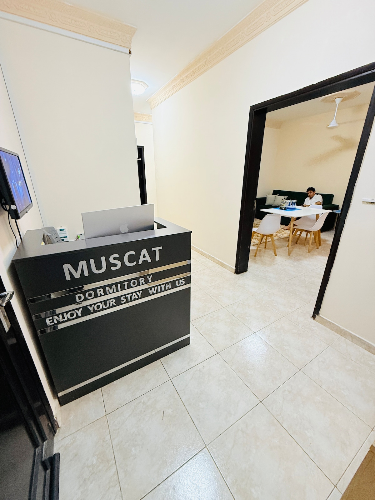 An apartment of two separate rooms, one room of 6 beds for women only and another completely separete room of 6 beds for mens only. Guests can check-in and check-out at any time of the day and night, and if guests change their journey plan, they can come at any day sooner or later, without having to make any change in their booking, Free transport from ruwi bus station to the hostel and free trekking and snorkelling trip