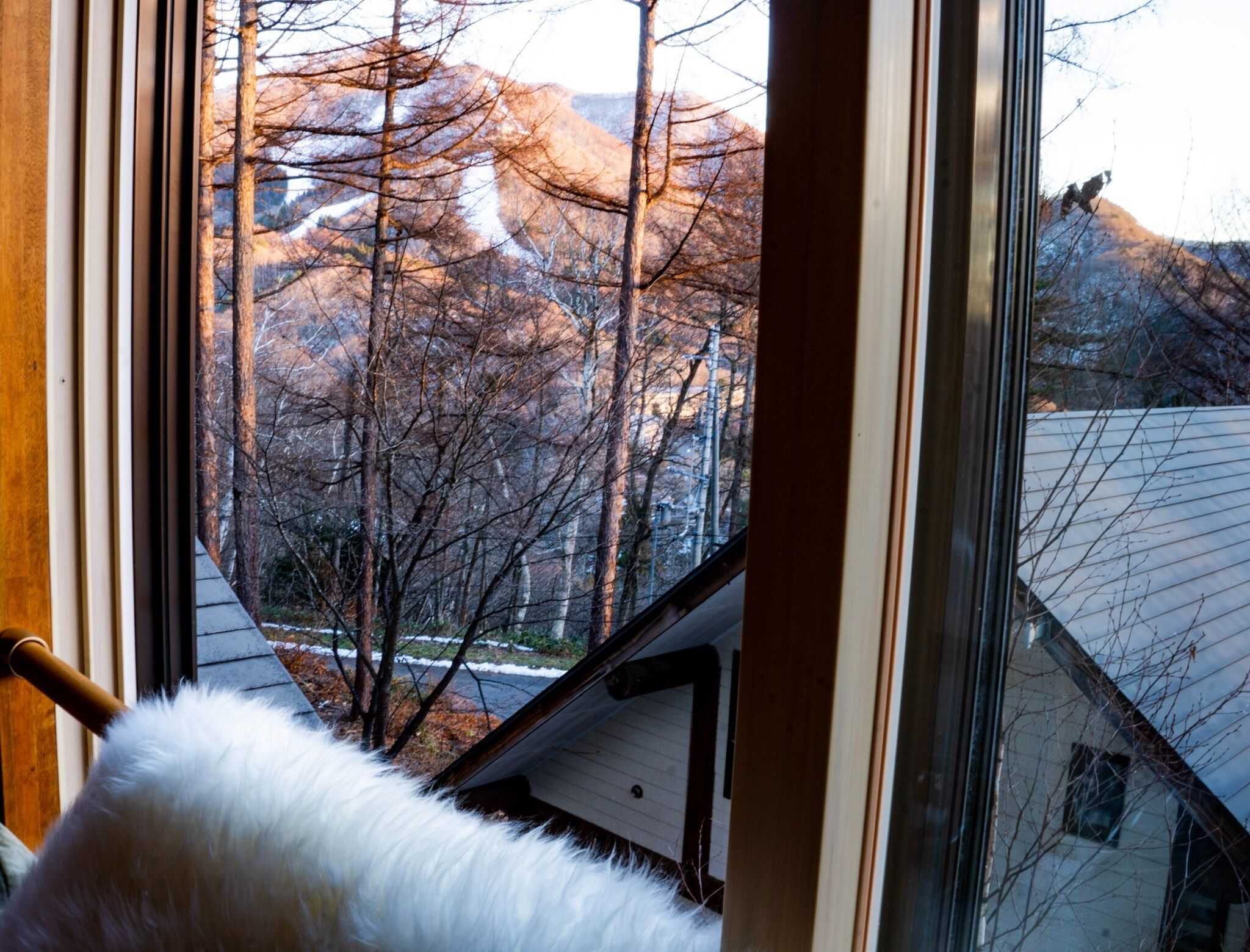 At the foot of Mt. Kurohime, you can see Mt. Myoko right in front of you from the window of SÁPMI.