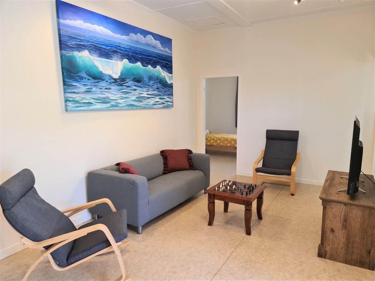 Main bedroom has a queen bed, it also includes an additional single bed suitable for a child. Accommodates up to 3 guests.