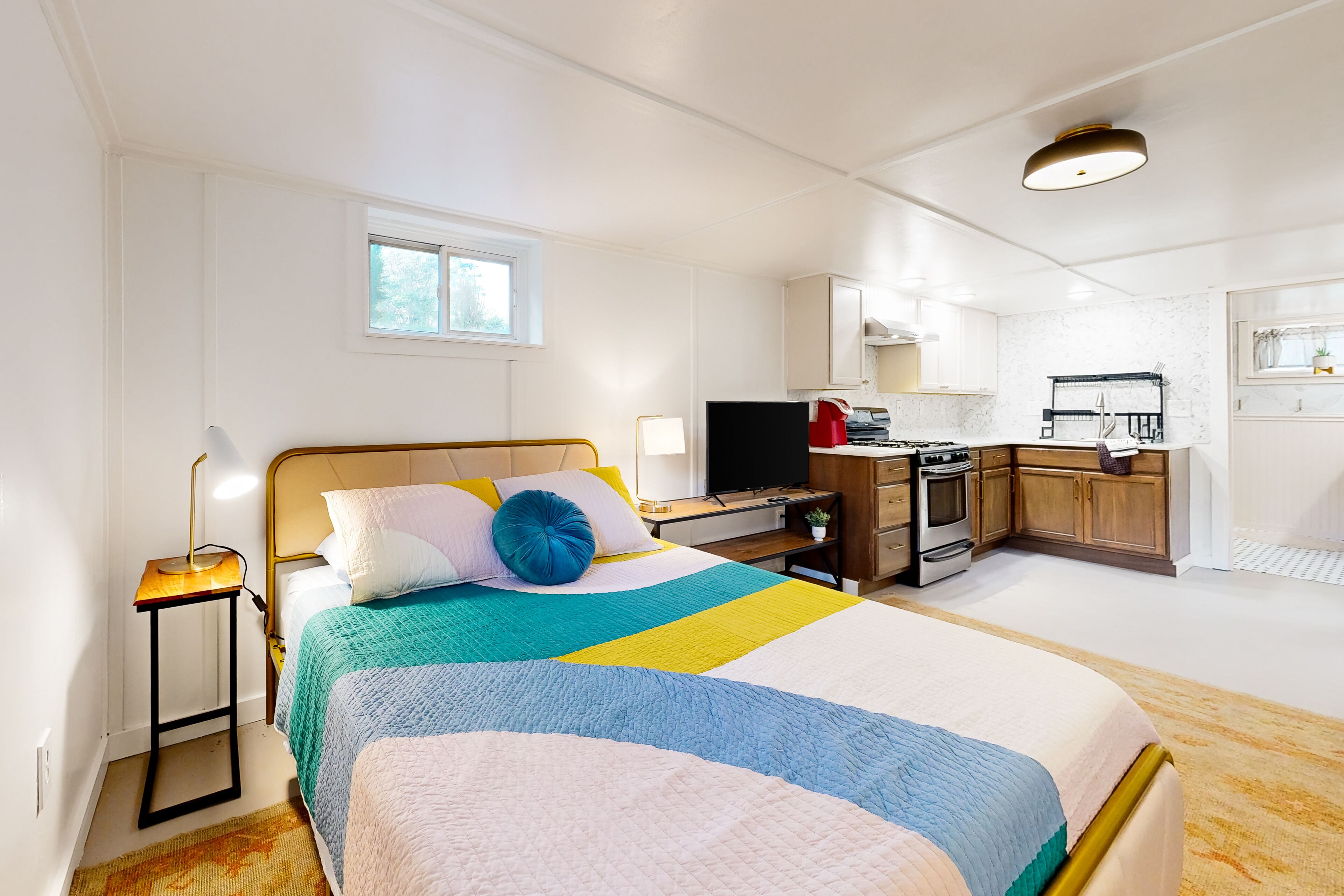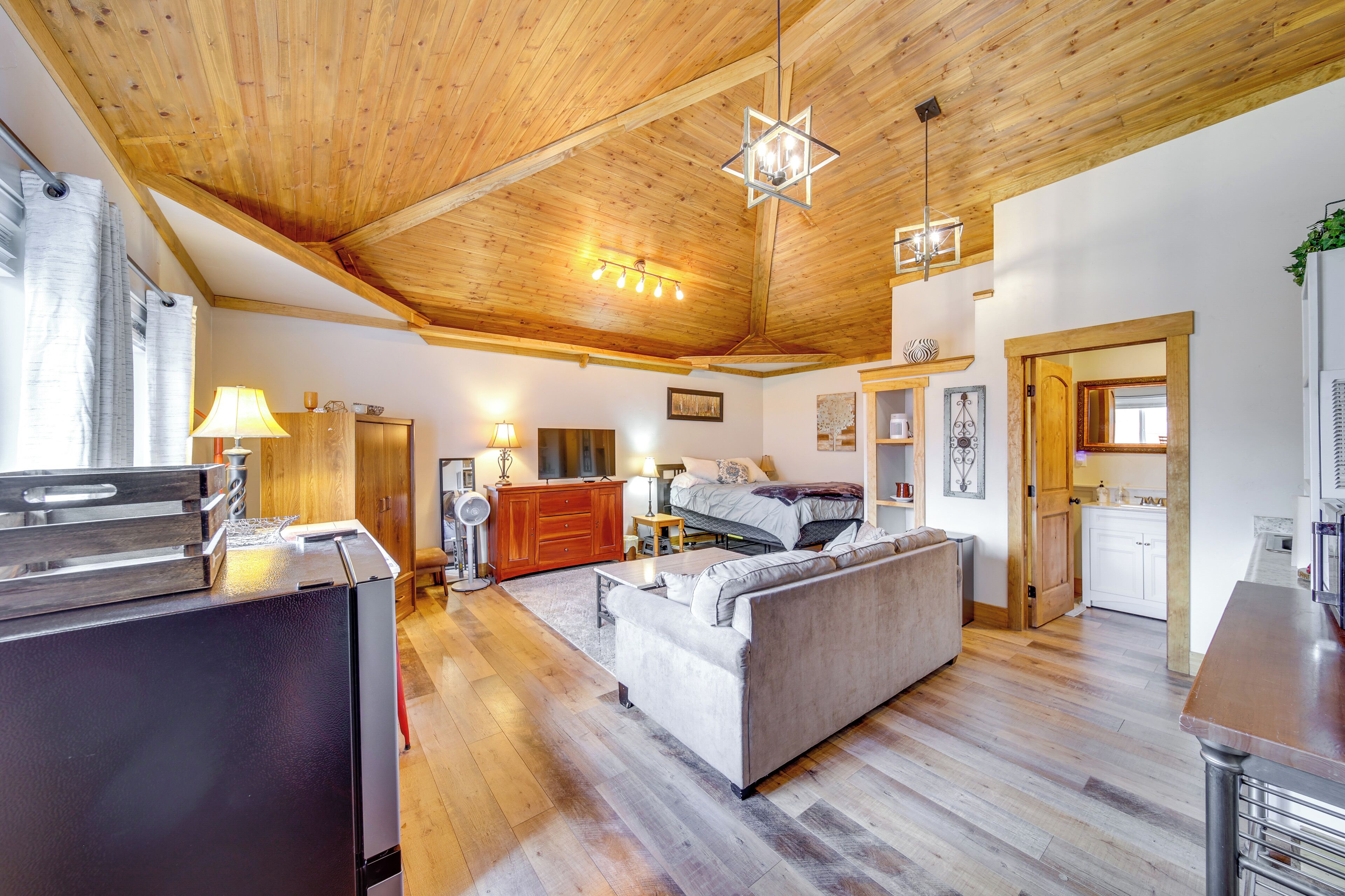 - Single-story studio, 1 exterior step required to enter