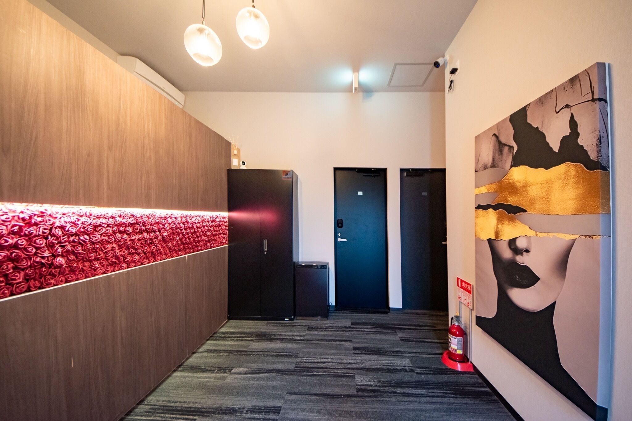 The area with the automatic door is for the use of apartment residents. Guests of the accommodation are not allowed to enter.