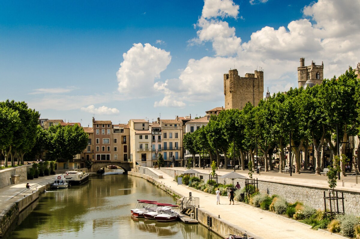 1 minute from Les Halles de Narbonne, voted the most beautiful market in France in 2022 and 3 minutes from the Promenade des Barques for a walk along the Robine Canal.