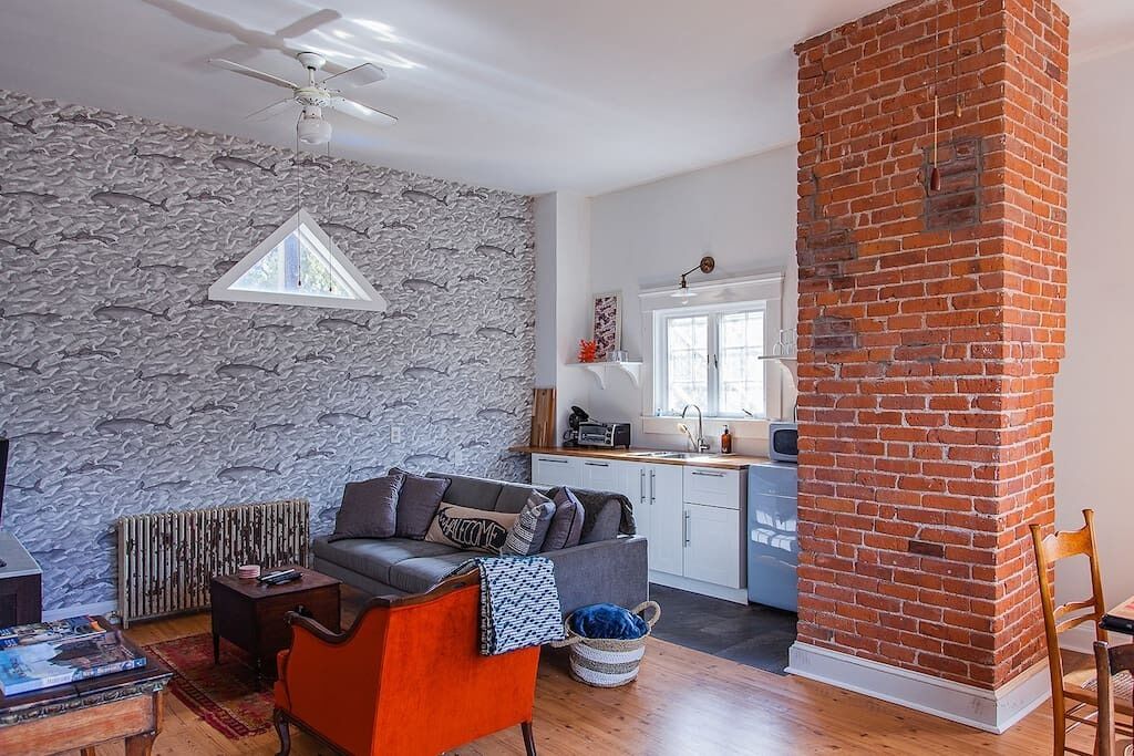 Open-concept, central, chic, and cozy. Perfect for relaxing or entertaining. Located above Cork Wine & Tapas, which offers great dining and occasional live music (primarily in summer weekends).