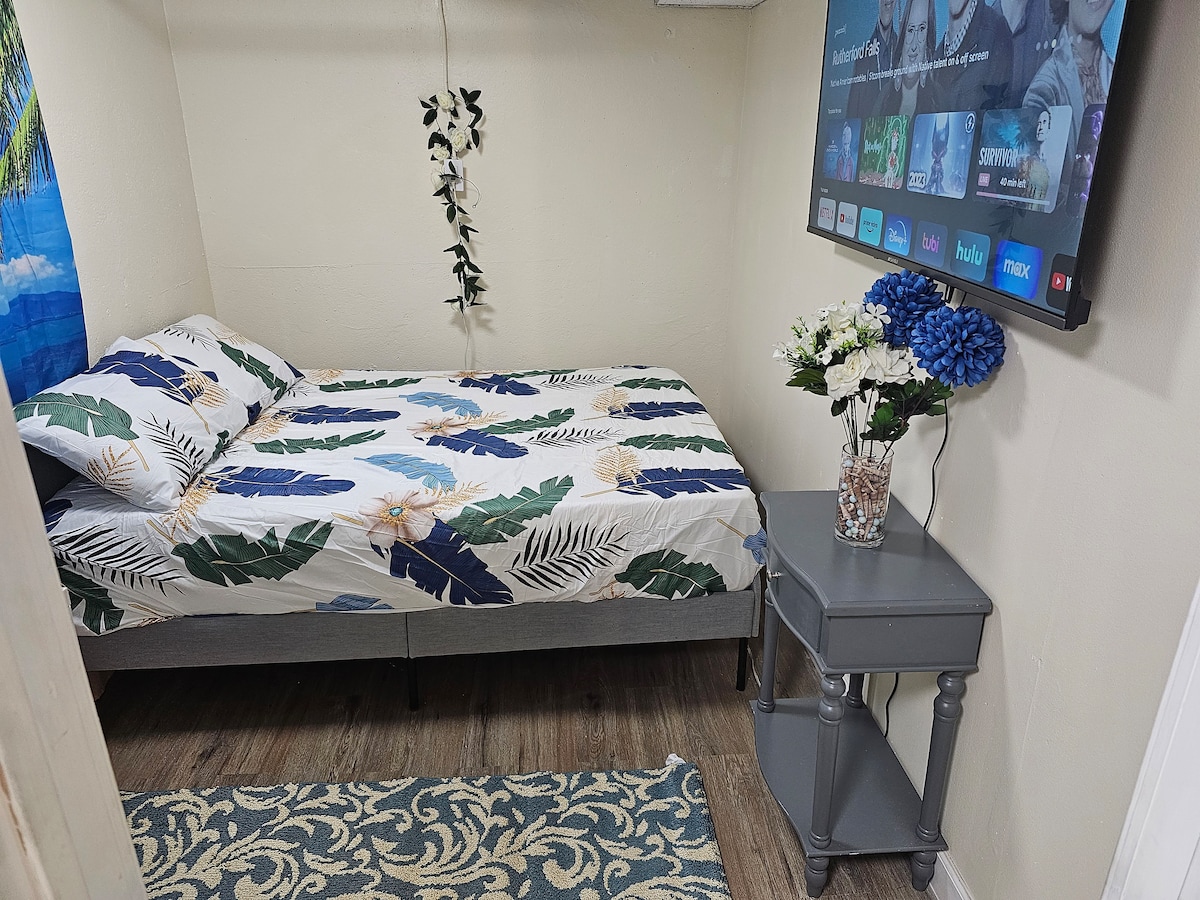 Discover cozy accommodations in the additional bedroom, furnished with a comfortable full-sized bed and a dresser to keep your belongings organized.