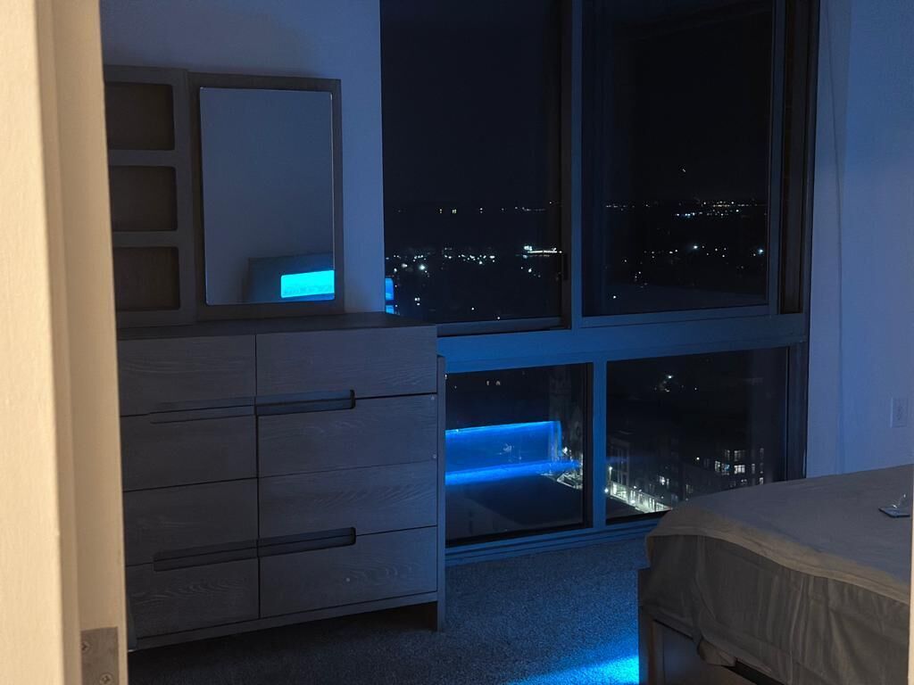This stylish place to stay is perfect for group trips. Public Transportation nearby. Theirs wi-fi in the apartment, theirs 2 smart tv one is 75 inch and the other one in the bedroom is 65 inch. Theirs a washer and dryer in the unit. Theirs also a private terrace for relaxation. Theirs a gym available for guest on the first floor opened 24 hours. Theirs also a rooftop open 24 hours as well, with a small arcade area.