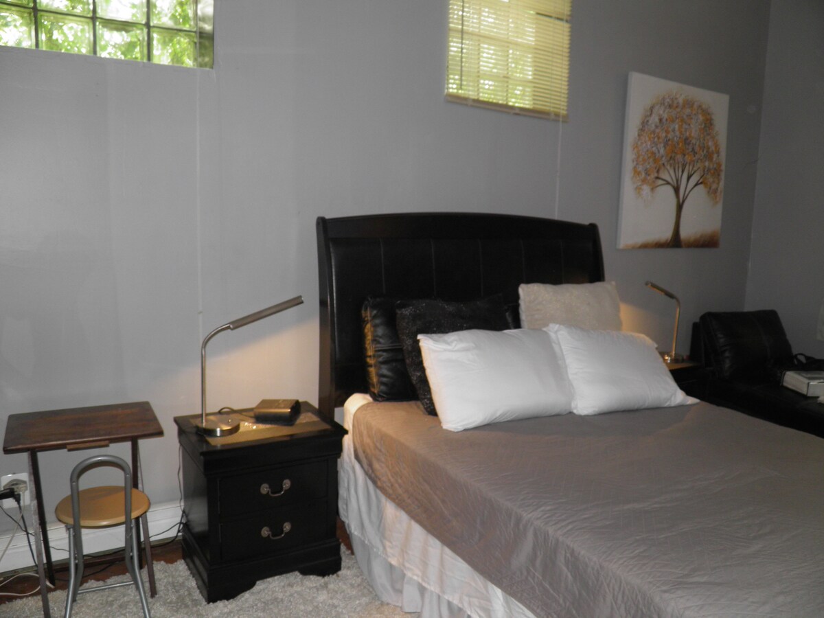 This is the rear, and most quiet of the 3 Bedrooms, in the rear of the Apartment. Directly outside your door is the refrigerator/kitchen. Queen size bed for 1-2 guest. Netflix and WiFi provided on 39” Flatscreen Smart TV. Please note additional taxes and hotel tax $3.50 daily per room for less than 90 nights.