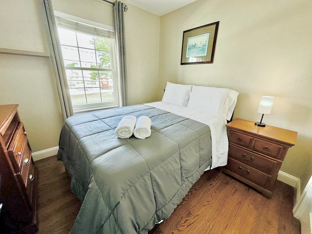 Beautiful furnished bedroom on the first floor house. Dead end street, public transportation a few blocks away. Fully furnished with One parking spot available. Shared bathroom and shared kitchen .