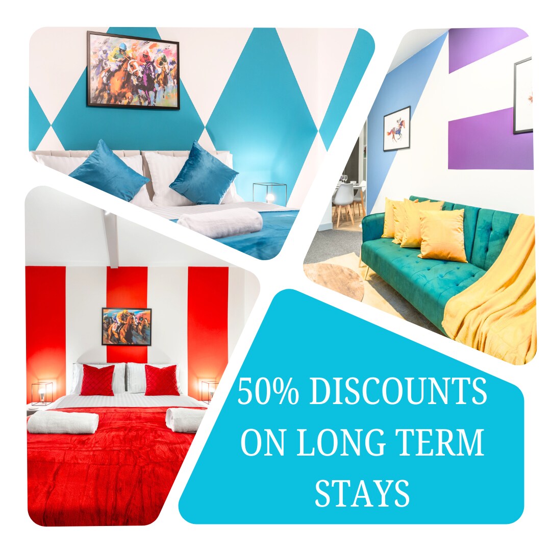 Enjoy Stylis and Modern 2 bedroom apartment in central but quiet part of Newmarket. Great location, 10 mins walk to High Street.15 mins walk to Tattersalls and Rail Station,5 mins drive to Racecourse , Gym, Shops nearby. 2 single beds in bedroom A. 1 single bed in the bedroom B. Fully equipped kitchen with integrated dishwasher & fridge freezer. Living room with double sofa bed. Smart TV, free WiFi. Washing machine & dryer. FREE parking. Ideal for small groups, professionals, business travellers