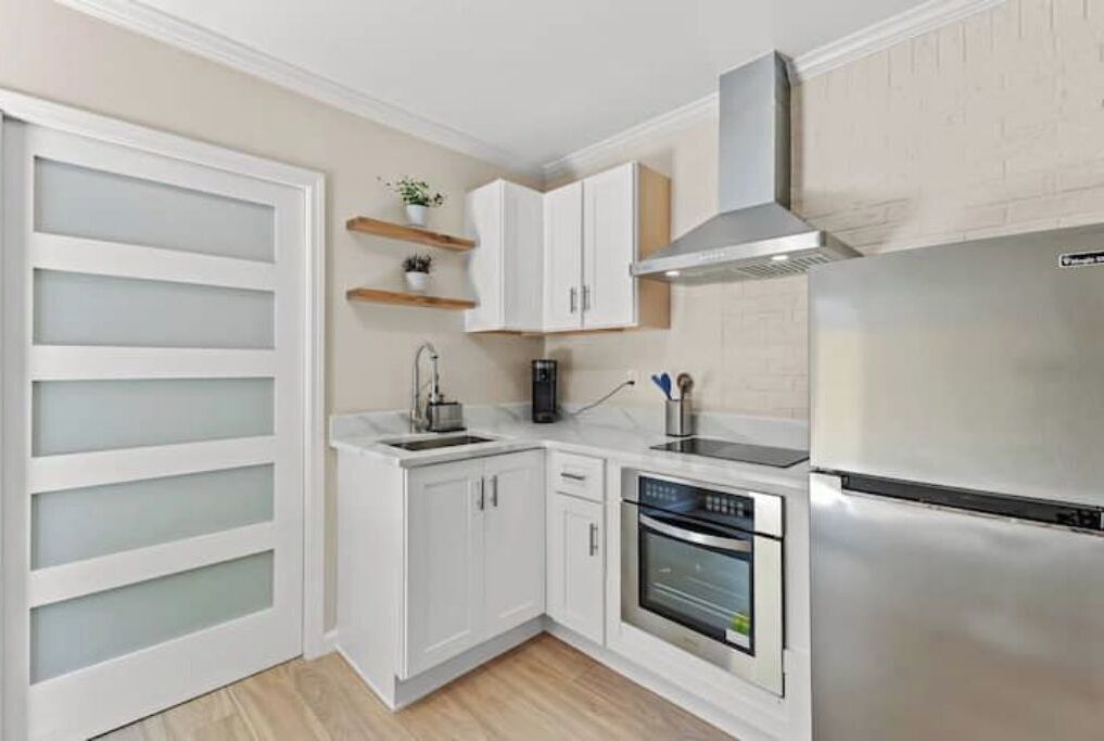 Perfect for solo travelers or couples, located below the main living area of 3 Linden, it offers a small simple space and has everything you need to make your stay very comfortable. This space is updated and modern with a touch of boho chic, it features a small living room with fireplace, a fully equipped kitchen, a bathroom with laundry and a bedroom. There is room to park steps from the door. We ask that you do not block the drive way at any time.