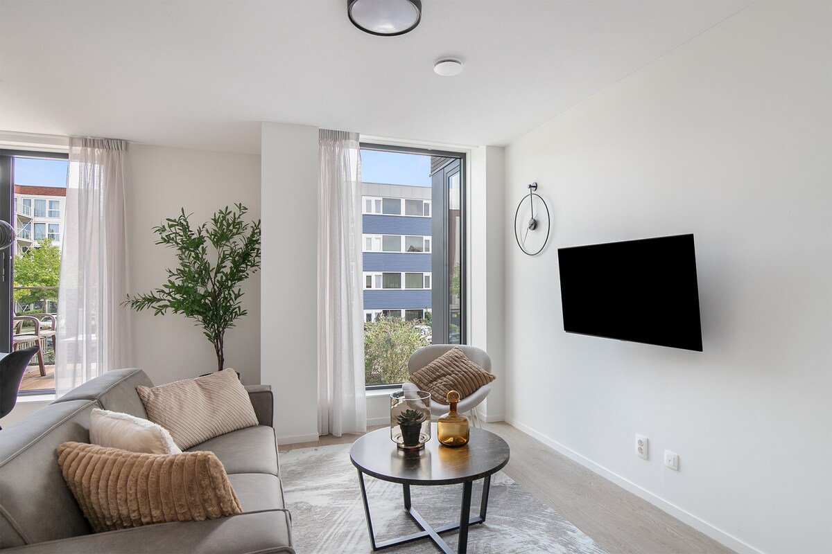 Ga er evenTijdens This renovated 3-room apartment is located on the ground floor and has a luxurious finish and all energy-efficient measures of today. The windows, equipment, floors, kitchen and bathroom are new and high-quality. The luxury kitchen is equipped with all necessary appliances. The apartment has two spacious bedrooms and a bathroom with shower, sink and washing machine. There is a separate toilet. This apartment also has a private garden.