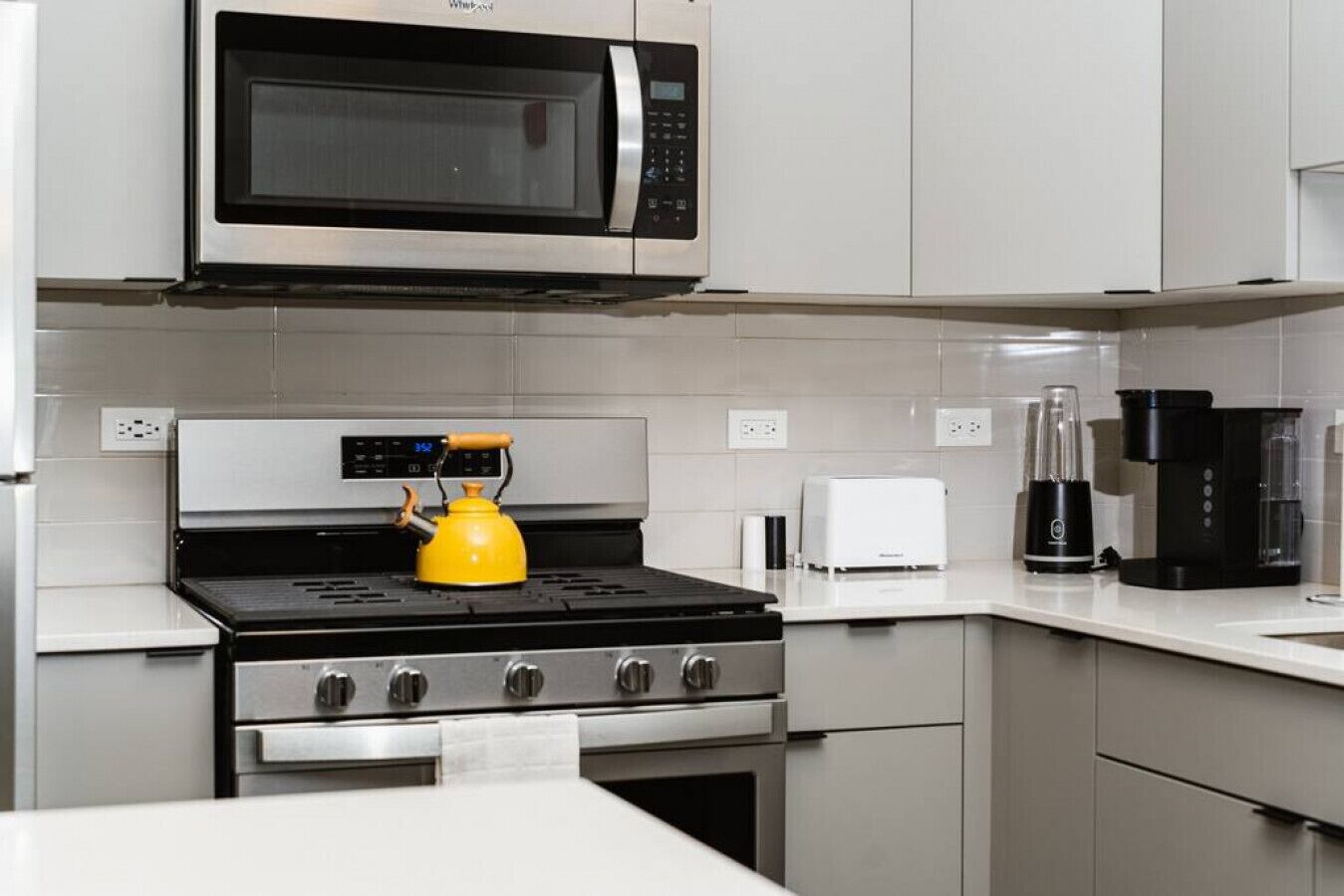 Stylish Cozy space with a fully stocked kitchen.