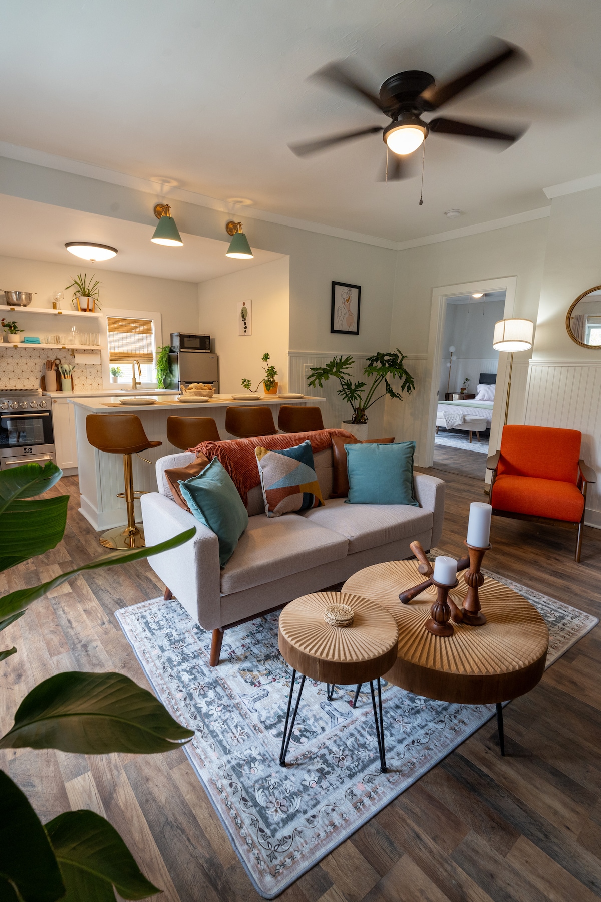 Step into this beautifully renovated property and discover two cozy bedrooms, each adorned with luxurious Queen beds, promising a serene retreat for up to four guests. 🛏️ Immerse yourself in the retro allure that resonates with the artistic essence of Park Circle, setting the stage for an inviting and inspiring ambiance. 🎨