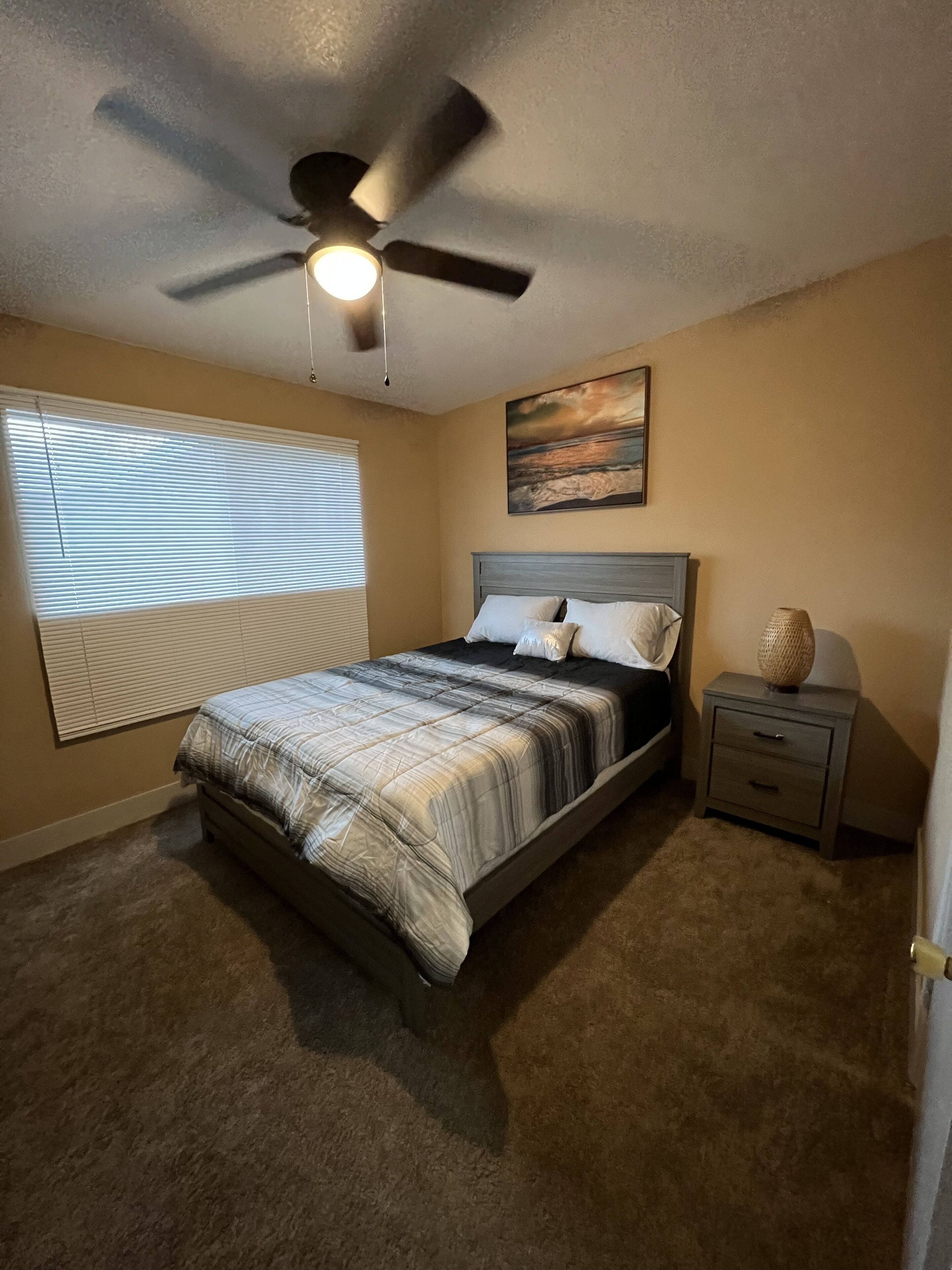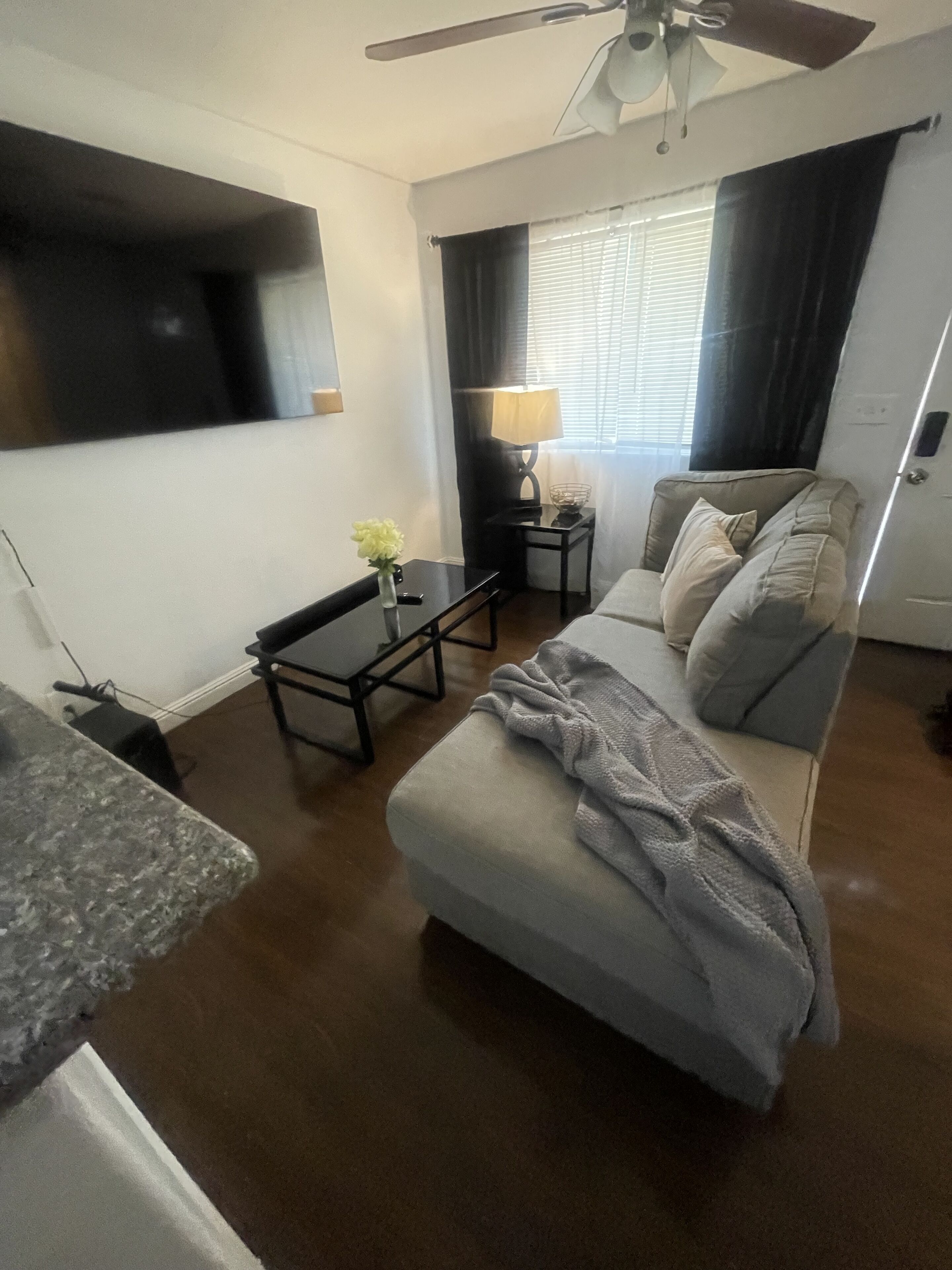 This private property includes a bedroom, kitchen, bathroom, and private entrance. Features includes a comfortable Queen size bed, High speed internet. Two smart TV’s (70”& 43”)perfect for streaming your favorite movies, shows or live sports, refrigerator, microwave, air fryer, cabinets stocked with dishes plates and silverware. We take pride in making sure our guest feel comfortable and safe.