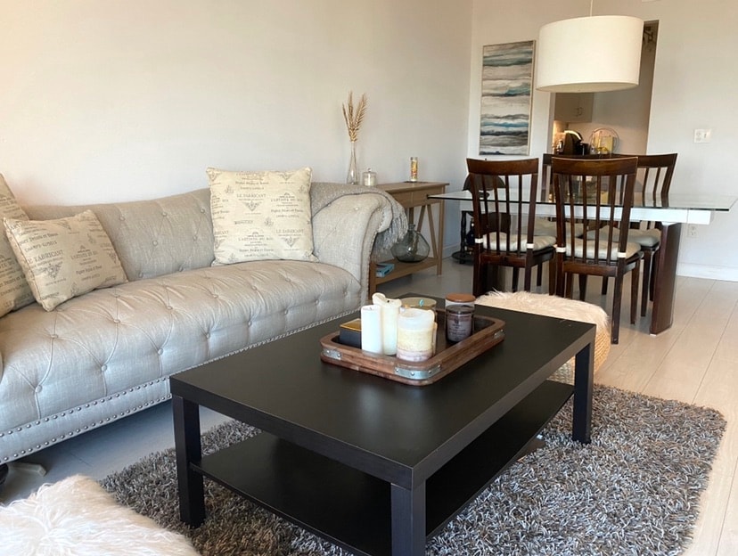 Indoor living: Open layout, modern furnishings, smart TV, formal dining table and much natural light!