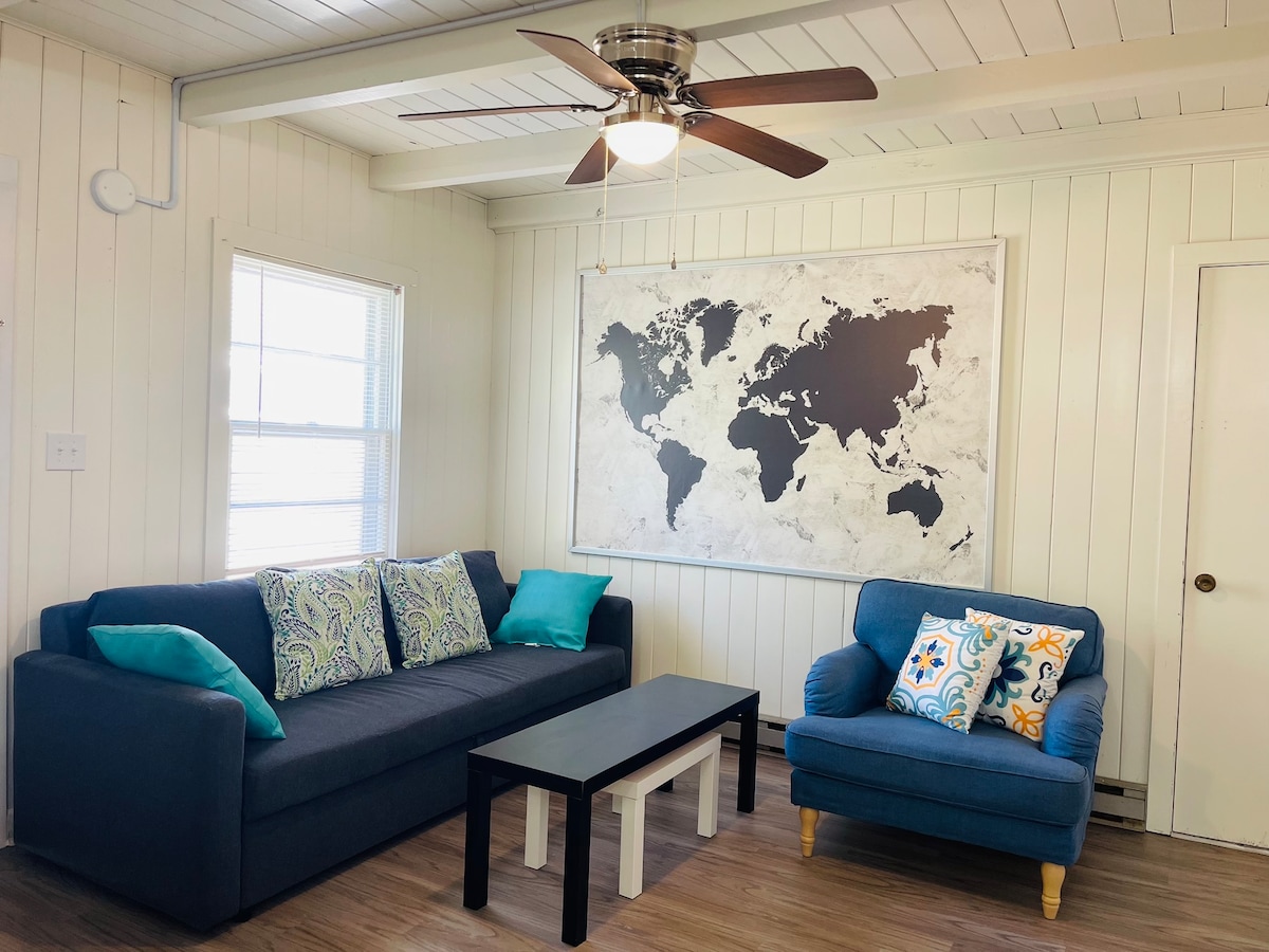 Conveniently park in 1 Free Assigned Parking Space. Go up one set of stairs to your second floor unit (#4) and enter with a lock code. So that everyone may enjoy a restful stay, please be mindful that you have neighbors below you and next to you.