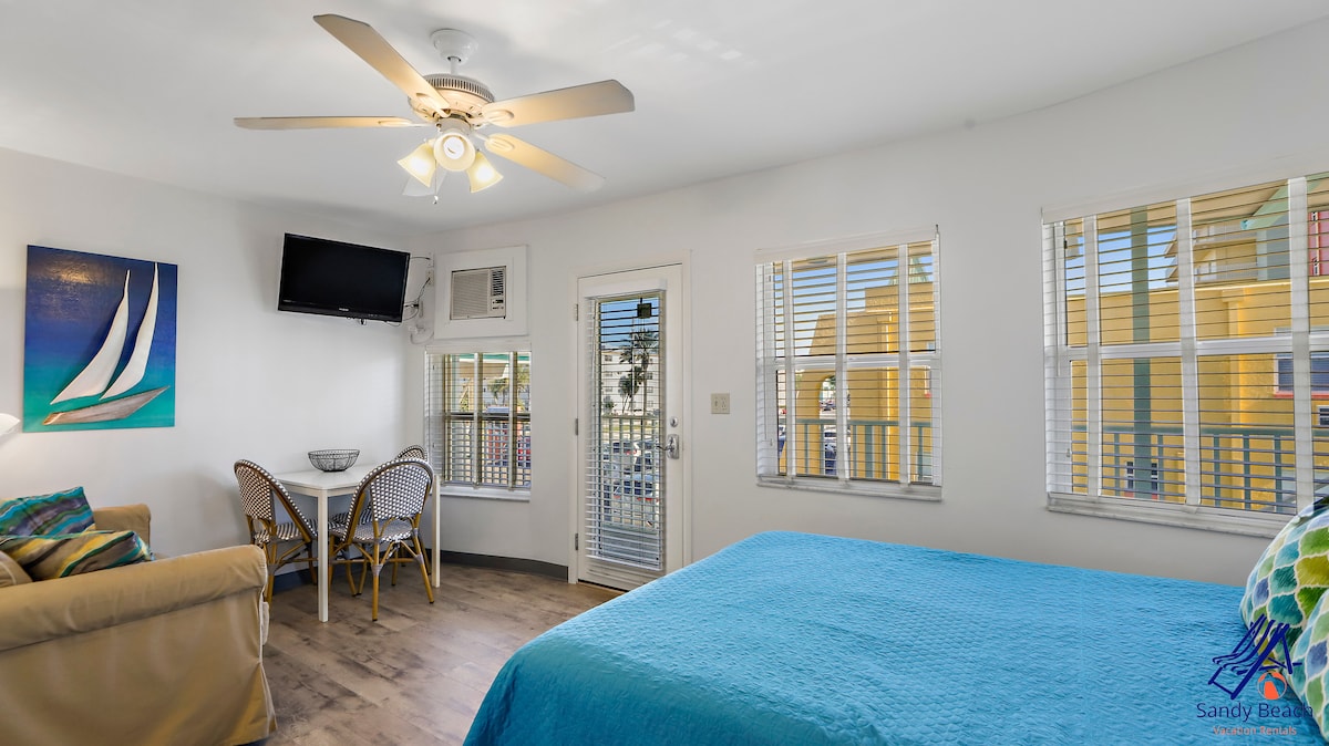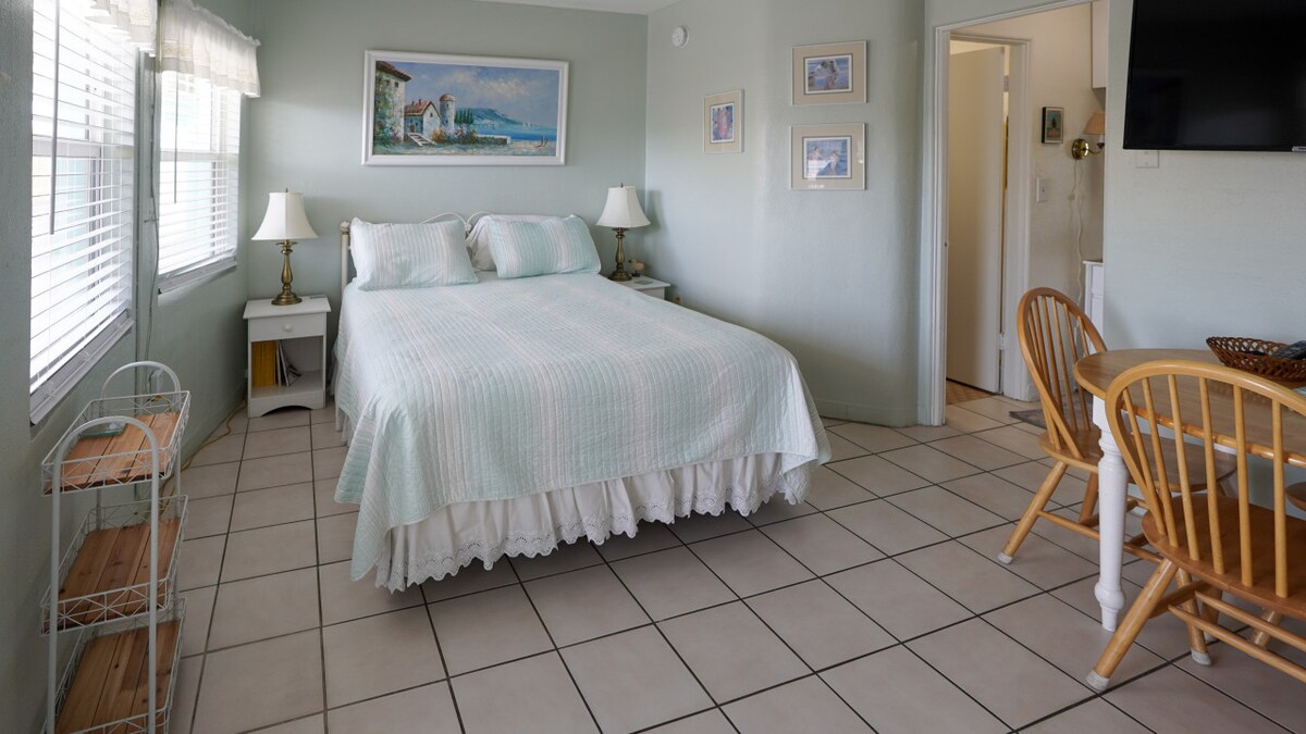 Sea Rocket 16 is on the second floor on the south side of the building. This unit has a new kitchen, flat-screen TV/DVD, queen-size bed, and new cheery yellow paint!It is perfect for a couple looking for a cute and cozy getaway! This old Florida style sleeps two guests. It has a nicely equipped kitchen and free WiFi. Please note: There is no guest parking onsite. There is only one assigned spot per unit.