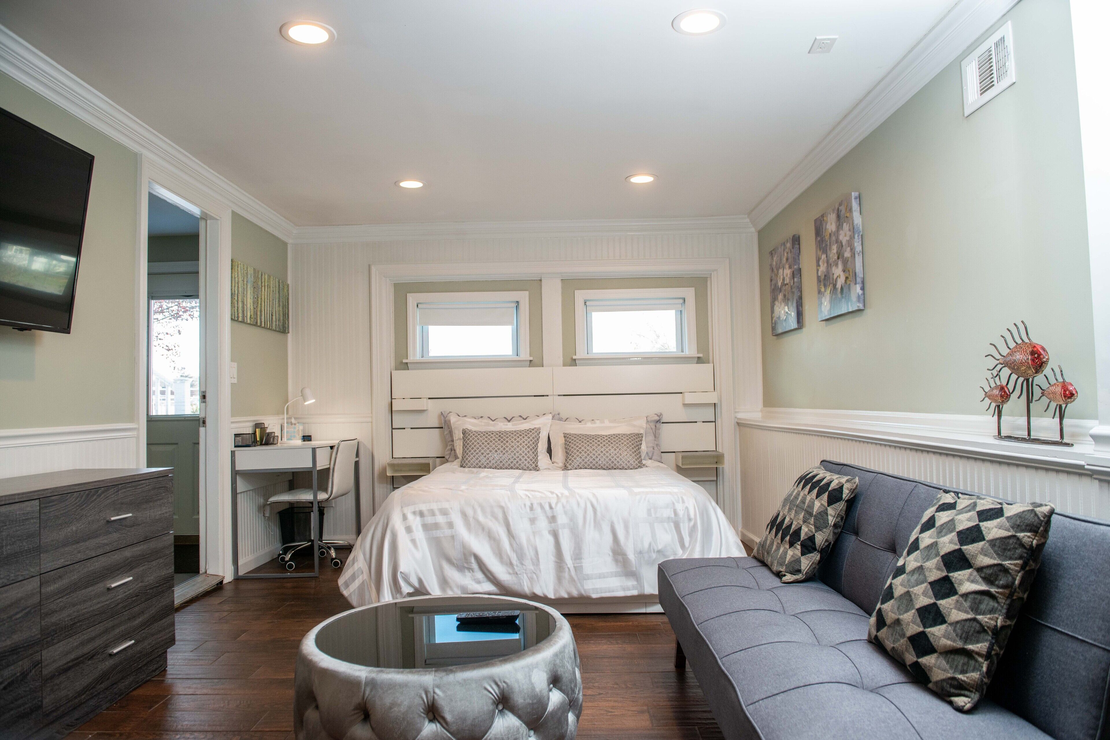 Private entrance: living room/ kitchenette/office, separate bedroom and private bath.