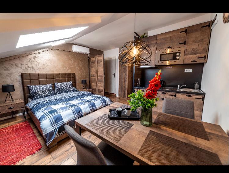 A 15-minute walk from Promenada Shopping Mall in Novi Sad, Princ Lux Spa with free parking features accommodations with access to a hot tub, spa facilities, and wellness packages. This apartment offers air-conditioned accommodations with a balcony. The accommodation provides a sauna, free Wifi throughout the property, and a 24-hour front desk. Providing a terrace and river views, the apartment includes 1 bedroom, a living room, satellite flat-screen TV, an equipped kitchen, and 2 bathrooms with a walk-in shower and a hot tub. The apartment offers bed linen, towels, and daily room service. There is a snack bar, and packed lunches are also available. Skiing and cycling can be enjoyed nearby, while a bicycle rental service and a private beach area are also available on-site. SPENS Sports Center is 1.2 miles from the apartment, while Serbian National Theatre is 2 miles from the property. Belgrade Nikola Tesla Airport is 52 miles away, and the property offers a paid airport shuttle service.