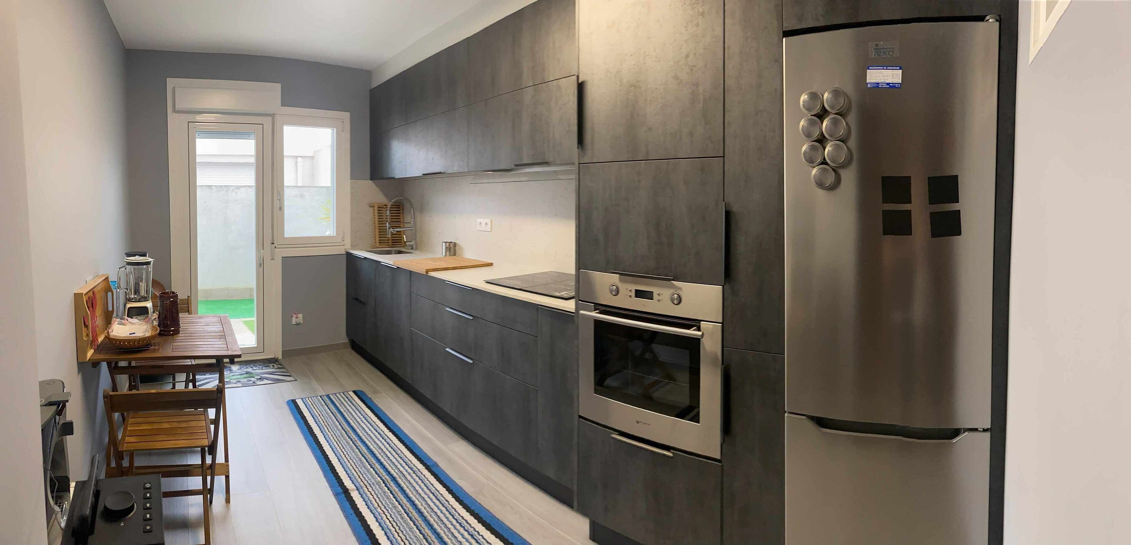 Newly Renovated Penthouse in downtown area of O Grove, three minutes walk from the harbor and 10 minutes from the island of Toja. All exterior except the toilet area. This is a newly renovated with new hardwood floors and woodwork floor. Two bedrooms: the master with 135cm bed and wardrobe of three bodies with large capacity and the second with two trundle beds (90cm). Living area with programmable pellet fireplace (available in winter with an additional fee) and exit to a bright covered terrace with space to relax or have breakfast. Large kitchen with table for four. Well equipped kitchen with new appliances (ceramic hob, fridge freezer, toaster, coffee maker). Shower room. There is a washing machine available in a community room.