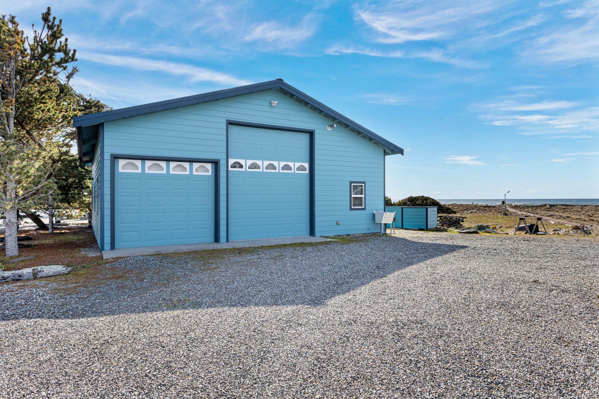 There is an outdoor seating area and a firepit for your exclusive use that is right on the edge of the beach.
