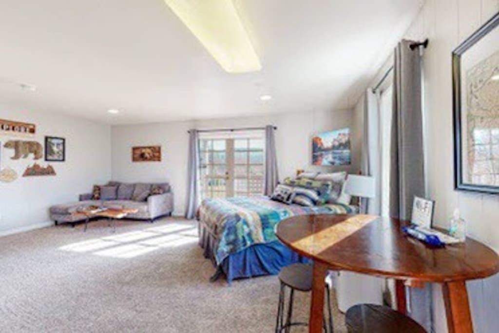 The perfect getaway for couples traveling to Yosemite or Bass Lake. Youll be walking distance to many restaurants and shops. This studio comes with a king-size bed, Smart TV, free WiFi and black out curtains. Its also equiped with a full kitchen and a Keurig coffee maker. The stuido is right above Smokehouse41 BBQ restaurant voted # 1 in California. Walk next door to Yosemite Axe throwing and Pedal Forward Bikes and adventures.