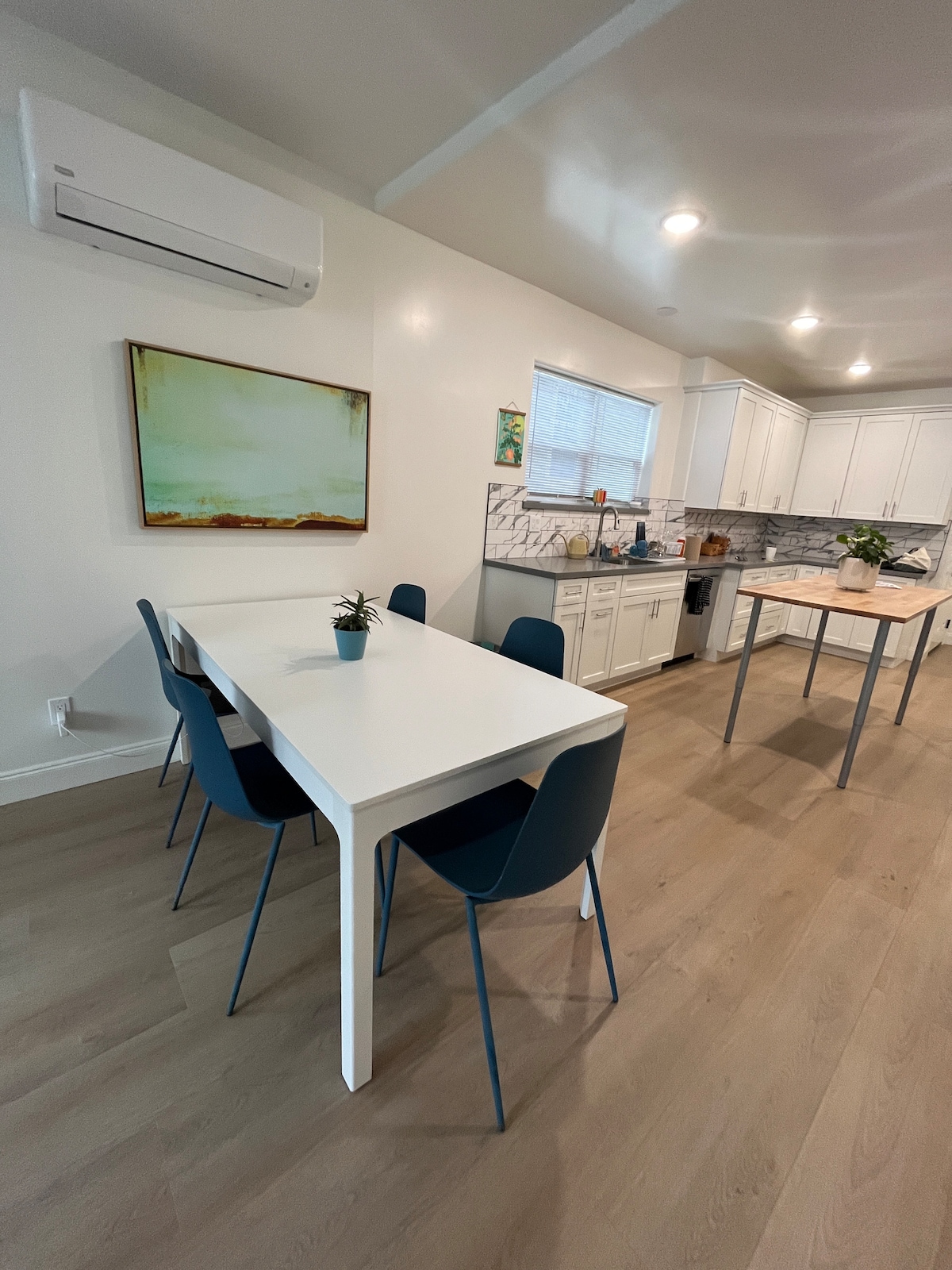 To elaborate, this is a studio not a home. The building itself is set up like a collection of townhouse-style buildings with 5 separate studio suites. Each studio has a private bedroom area, bathroom, and kitchenette with a mini fridge, toaster oven, microwave, and countertop 2-burner hot plate, so you can easily cook from inside the studio. The first-floor common area has the main kitchen, dining table, and laundry. All property doors are access-controlled via a key fob, and only you will be able to access your private studio door. There is one studio on the first floor, two on 2nd, and two on 3rd.