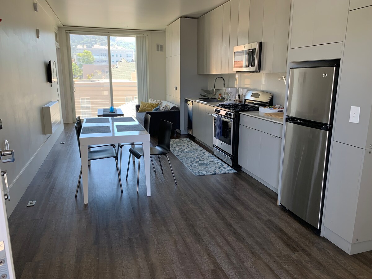 Our newly constructed community is located in the Merritt neighborhood, close to Lake Merritt, Downtown Oakland, Jack London Square, and much more! The minimalist and modern layout of the community features fully furnished studio units, which include private kitchenettes with quartz countertops, abundant built-in storage, vinyl flooring, and large double paned windows with abundant natural lighting.