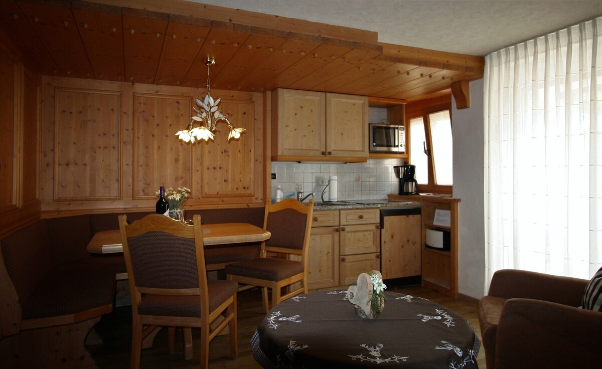 The apartment is 53 m² and has a large south-facing balcony with a wonderful view of the mountains. In the living room there is a couch that can be converted into a comfortable sleeping place. The cozy dining area offers plenty of space for 4 people.