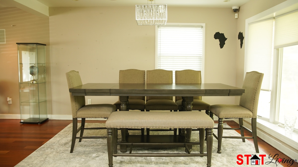 The bright and airy kitchen overlooks the backyard and is fully equipped with new stainless steel appliances, quartz countertops tops and an eat-in table. Unleash your inner chef with a fully stocked seasoning rack, conventional blender, ninja blender and food spiralizer. The oven comes with a built in air fryer and there are baking tins and glass Tupperware for those awesome leftovers.