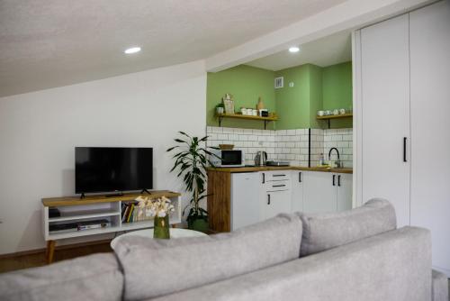 Just 1.1 miles from Church of St. John at Kaneo and a 14-minute walk from Icons Gallery, Avocado Apartment features accommodations in Ohrid with a shared lounge. This property offers access to a balcony, free private parking, and free Wifi. The accommodation offers a shared kitchen and luggage storage for guests. Offering a terrace and garden views, the spacious apartment includes 2 bedrooms, a living room, satellite flat-screen TV, an equipped kitchen, and 2 bathrooms with a shower. For added convenience, the property can provide towels and linens for a supplement. A dressing room and laundry service is also available. Popular points of interest near the apartment include Saraiste Beach, Early Christian Basilica, and Port Ohrid. Ohrid Airport is 5.6 miles away.