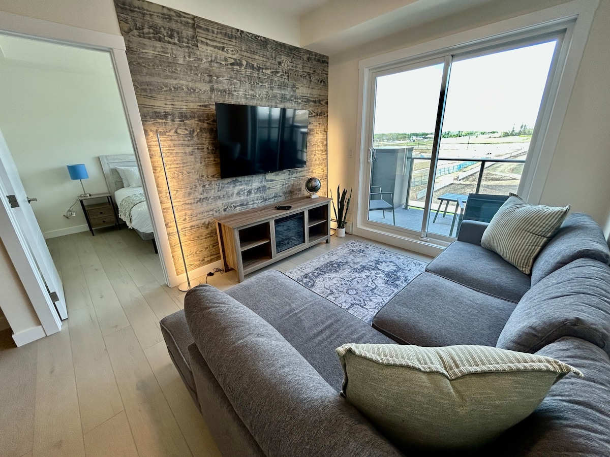 Welcome to our stylish and comfortable fully furnished 1 bedroom condo in the newly build Wedderburn area of Okotoks, just steps from the Darcy shopping plaza, Shoppers Drug Mart, Safeway, Leopoldo’s Tavern, Kenko Sushi, New York Pizza, etc.