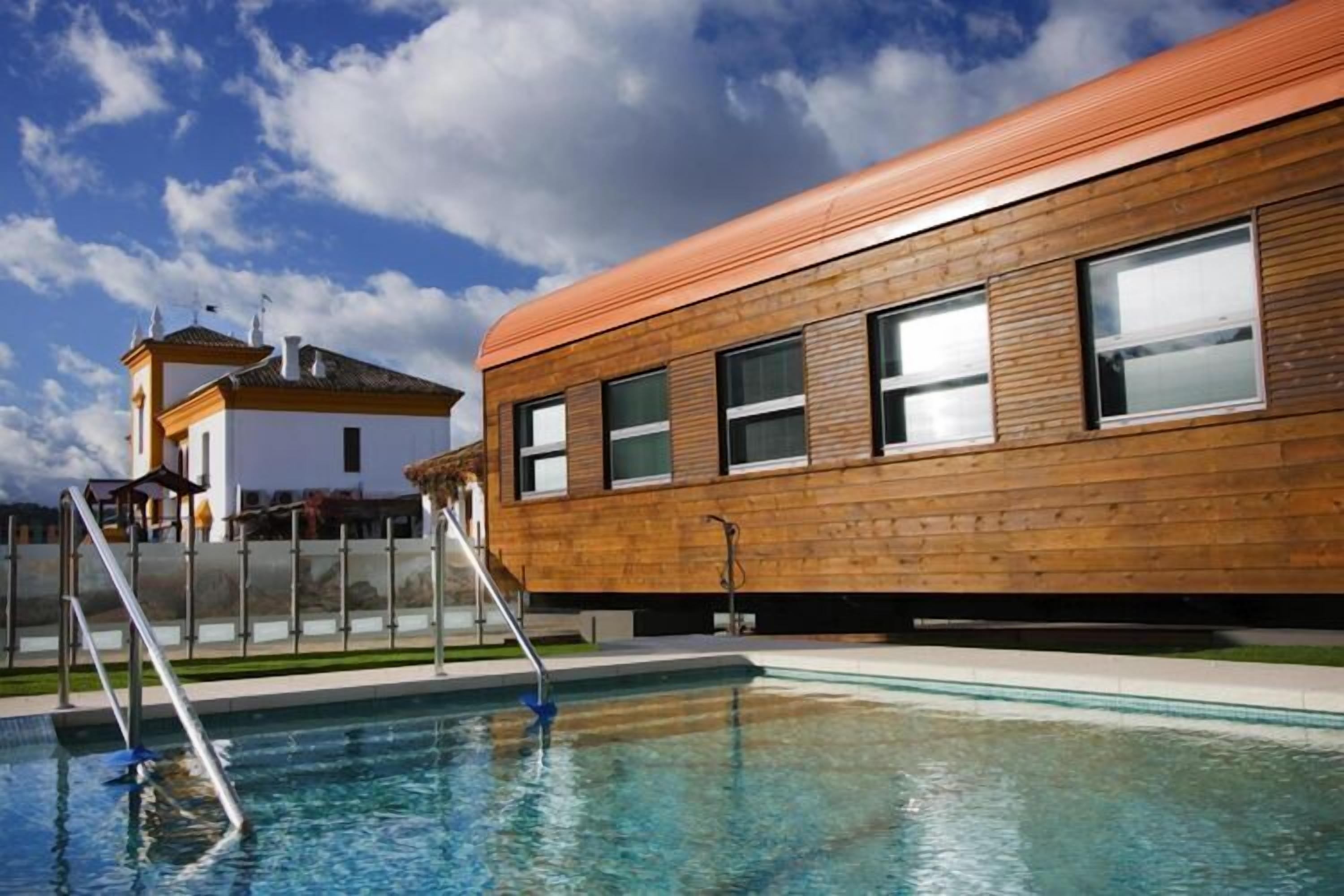 This holiday accommodation is special. overnight in an old train carriage in the middle of nature. The apartments replicate the wagons of the train that was supposed to bridge the Jerez-Almargen railway in the 19th century, but was never run. Each car measures 55 square meters and has two bedrooms, a bathroom, a living/dining room and a small covered terrace. The complex also has an outdoor salt water seasonal pool, bicycle hire nearby with a 25% discount and an old converted station where you will find the reception and restaurant, Via Verde de la Sierra, never before a train goes past is 36km south finds the foothills of the southernmost mountain ranges of the Iberian Peninsula between the towns of Olvera and Puerto Serrano in Cadiz and in between Coripe in Seville. The natural landscape along the Vía Verde between illuminated tunnels and viaducts is mainly dominated by the influence of the Guadalete, Guadalporcún and in the highest part of the rivers Guadalmanil. Pass through places as spectacular as the Peñón de Zaframagón, the largest griffon vulture sanctuary in Andalusia and one of the most populous in Europe. The Via Verde de la Sierra is a tourist and environmental resource of great value that allows the visitor to see the richness of the cultural and natural heritage of the areas through which he travels and enjoy a wide range of sports, educational, offer tourism and environmental activities.Welcome packMobility: Suitable for people with reduced mobility