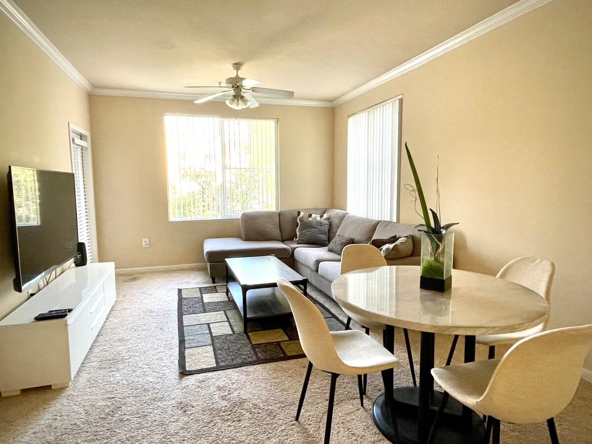 Beautiful 2 bedroom and 2 bathroom apartment for 4 to 6 people and comes with 2 car parking. This apartment is located a 1/2 mile from the Toyota Arena, is also conveniently located 1.5 miles from the Ontario Mills Outlet shops, and 5 miles from the Victoria Gardens and Bass Pro Shops; and is just around the corner of a Target and varied dining experiences such as Olive Garden, Lazy Dog, Red Lobster The apartment comes with a washer and dryer in the unit.